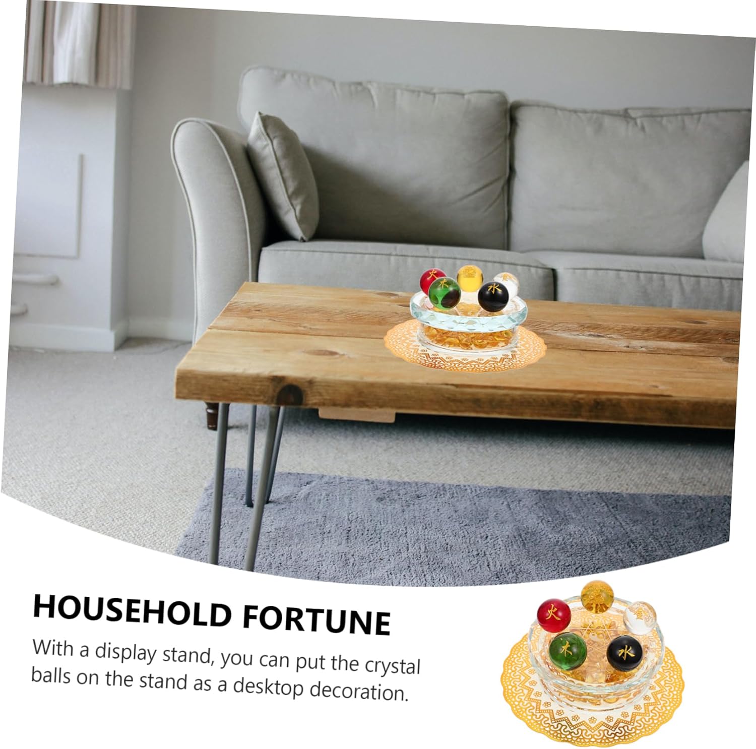 Package Include 5 × Glass Balls 1 × Glass Stand with 1 × Packing Case 1 × Cushion Characteristics - Material: balls decorative for bowl. -Product Info: Transport Formation - Color: Golden Glass Ball Ornament. - Size: 12.00X12.00X7.00cm/4.72X4.72X2.75in glass ornament balls - After careful polishing process, they have a comfortable touch an excellent hand feeling decorative sphere. - Smooth texture and representing positive energy, they are effective in relieving anxiety and stress glass decorative balls. - The case is a symbol of good fortune and wealth, which makes it a perfect housewarming decorative balls home decor. - Each of the 5 glass ball represents a physical, emotional or , helping to enrich one's spirit and well- Fortune Ball Adorn - With a display stand, you can put the glass balls on the stand as a desktop decoration fortune ball.Goods InformationGlass Ball Decor It is perfect for display balancing, Reiki, etc.glass balls With the display stand, you can display them very well.Glass Ball with Base They are also decorated with a case display stand, which is delicate and blessing, and a great for collectors or your friends.glass balls decorative These five-element glass balls are smoothly and carefully polished gemstones