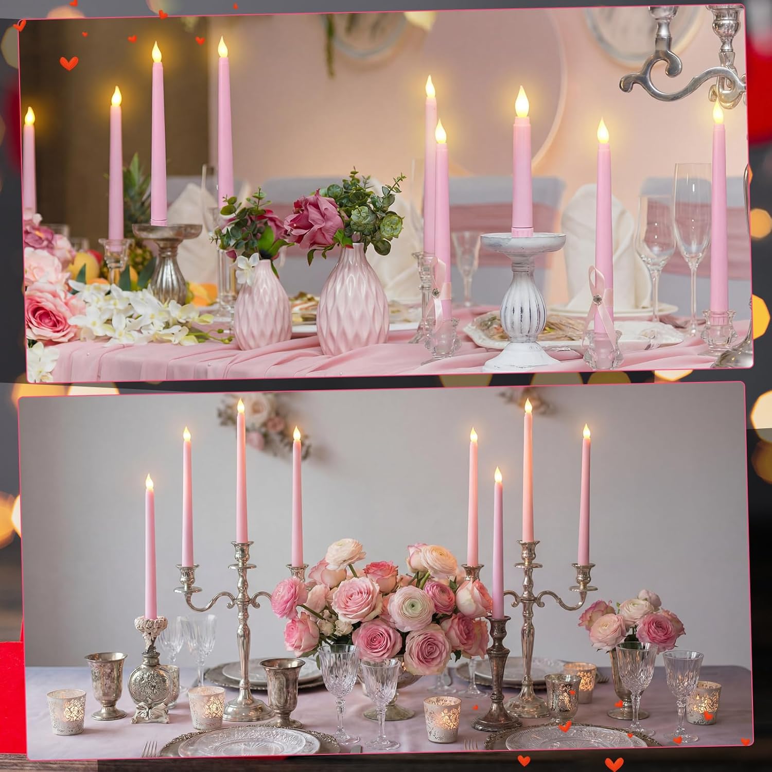 Features: Safe and realistic glow: Our flameless candle replicates the warm and cozy atmosphere of a real candle without the risk of open flames, smoke, or hot wax. Ideal for households with children and pets. Remote control and timer function: Use the included remote to DIY your lighting experience, adjust brightness, set timers, and choose light patterns to match your mood or activity. Specifications: Main material: ABS and LED electronic components Color: pink Size: about 11 inches in height and 0.8 inch in diameter Package includes: 120 x Flameless candle 10 x Remote controls Notes: Manual measurement, please allow slight errors on size. The color may exist a slight difference due to different screen displays