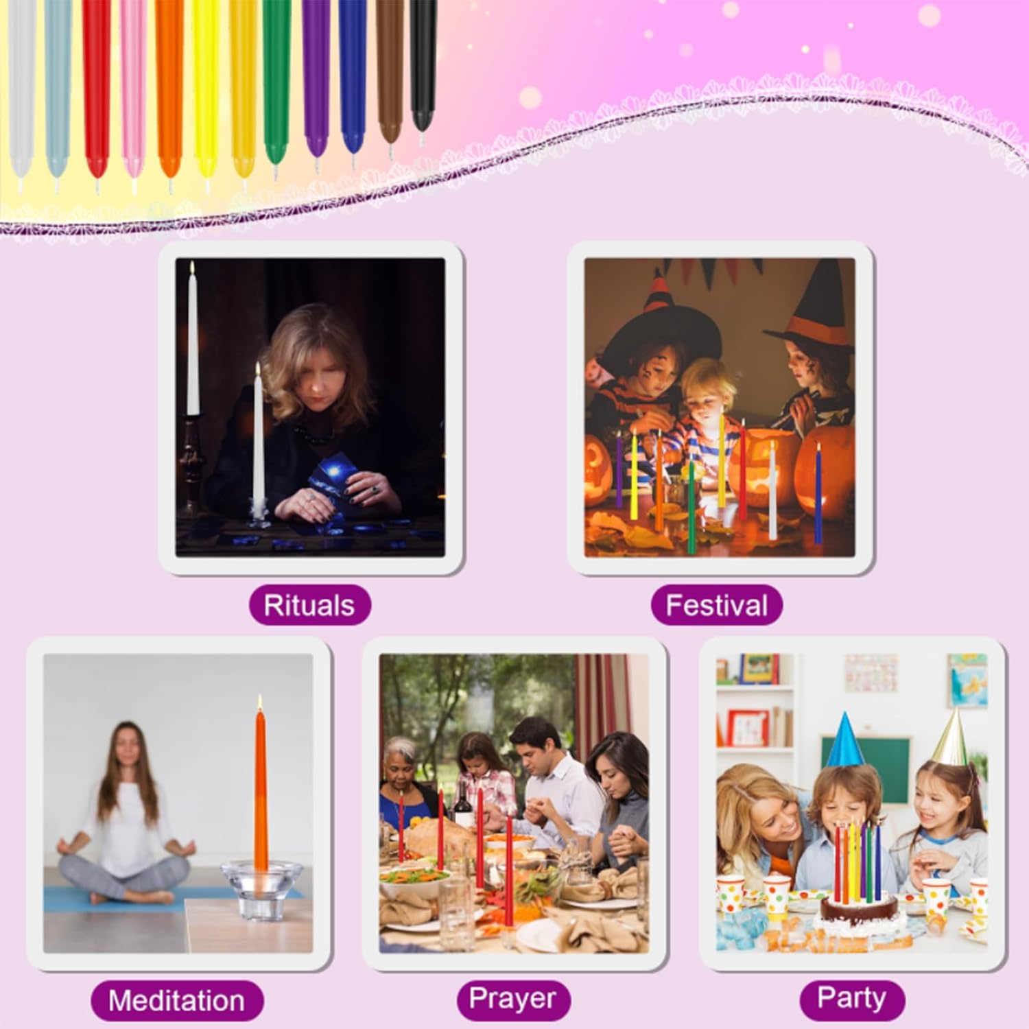 Tobeape 24 Pack 4 inch Black Spell Candle & 10 inch Colored Taper Candles for Wedding Dinner Party Home Décor, Long Burning Spell Chime Candles for Witchcraft Rituals Prayer Meditation