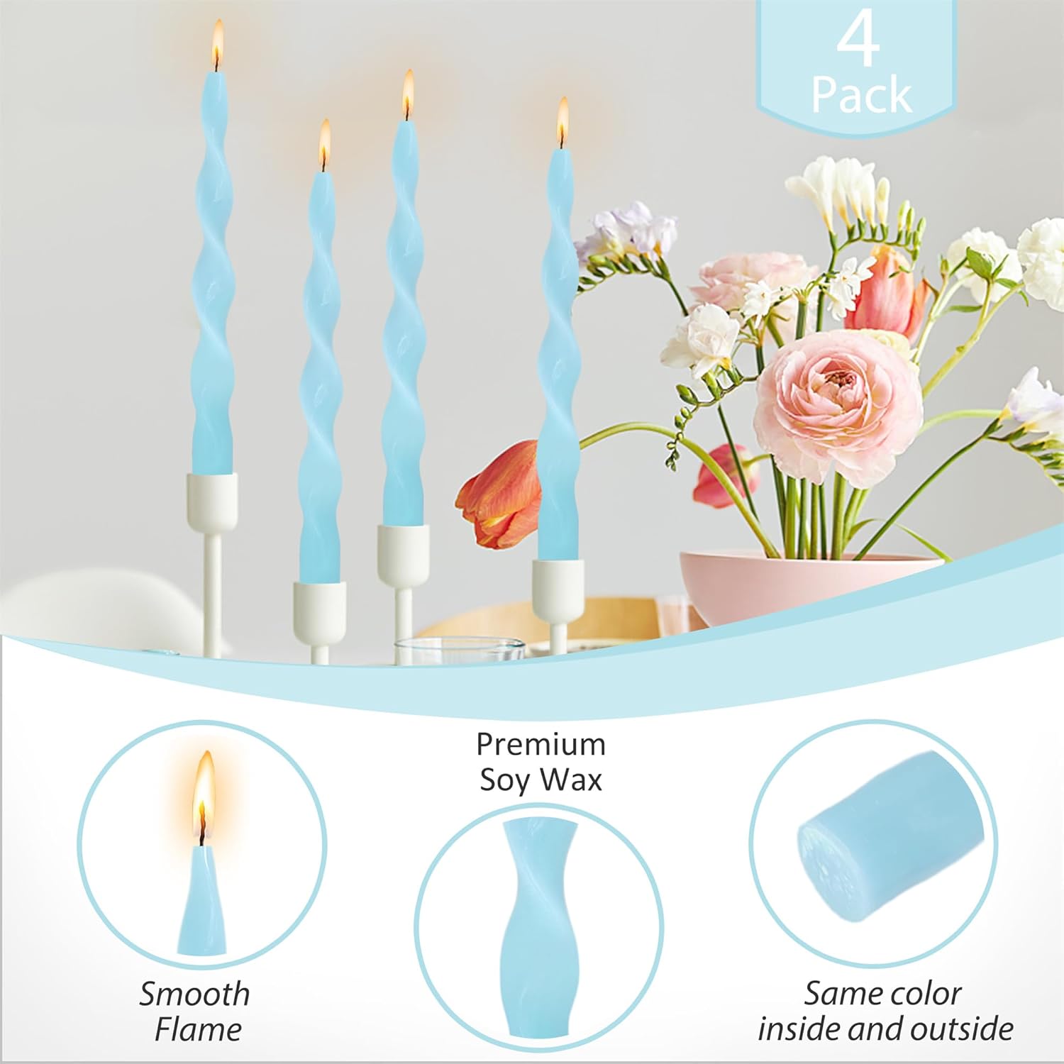 [Unscented Candle Timeless Elegance]: Elevate your space with the timeless allure of tapered candles. Their slender profile and graceful swirl shape exude sophistication, casting a gentle glow that sets the mood for any occasion, from intimate gatherings to formal events. [Pastel Candles Premium Quality]: Crafted from the high purity paraffin, our taper candles ensure a clean and consistent burn, providing 6hours of warm, flickering light. Experience the difference in quality with our meticulously crafted candles. [Twirl Candles Multi Use]: Perfect for both decorative and practical purposes, our spiral taper candles are ideal for weddings, dinner parties, religious ceremonies, and everyday home décor. Create stunning centerpieces, add a romantic glow to your evenings, or simply elevate your living space with the timeless charm of pink candles sticks. [Handmade Wavy Candles]: Each Artistic Candle is unique,ocean ripple shape, making them suitable for any interior design style from Scandinavian minimalism to colorful boho settings. Elevate your space with the timeless allure of Spiral candles. [Candle Ideal Gift Choice]: Searching for a thoughtful gift for a loved one or friend? Look no further. Our Twisted Candlesticks make a charming gift for housewarmings, birthdays, or holidays, wedding,dinner adding a touch of warmth and elegance to any home.