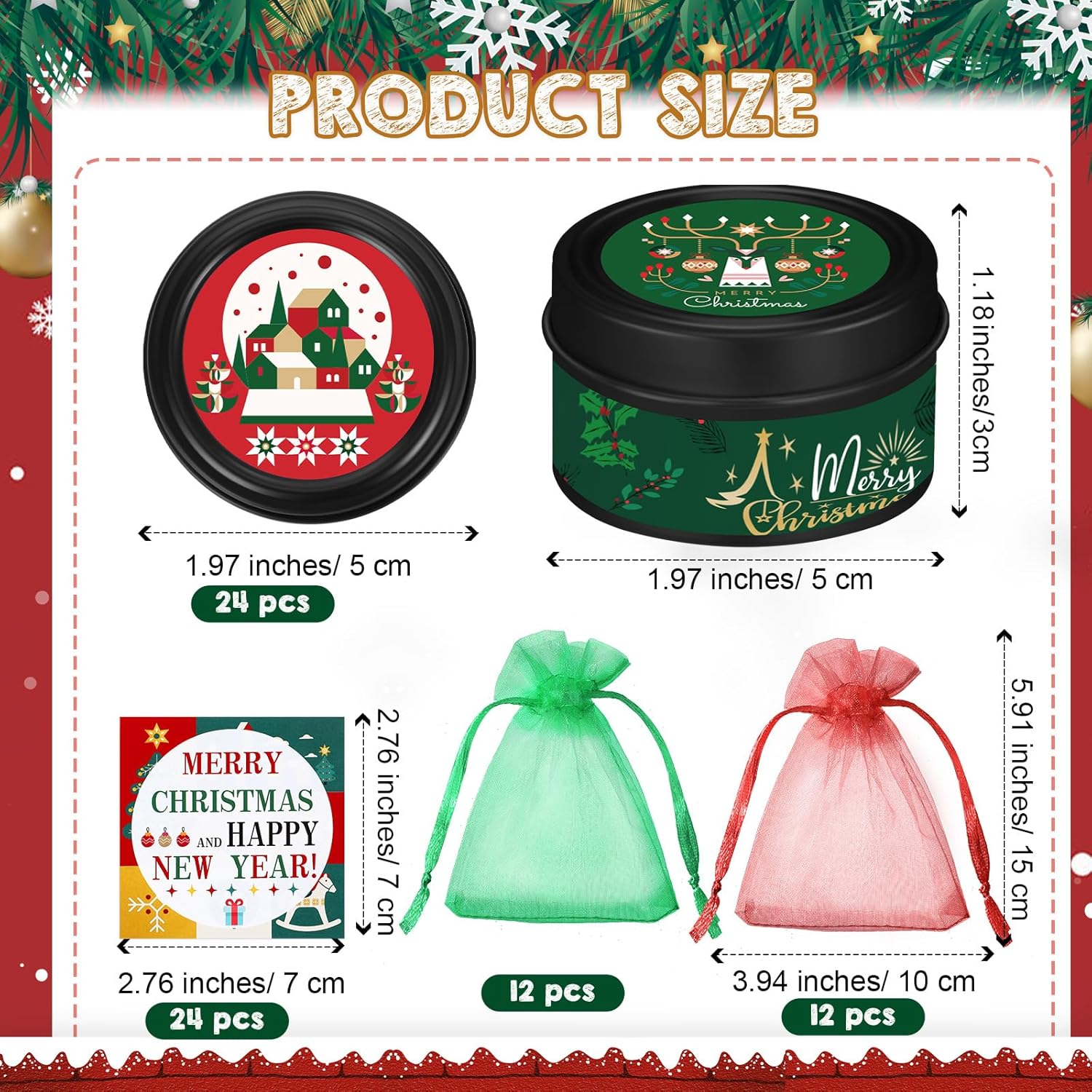 • More Than Just Candles: the gift set includes more than just candles; You will receive 24 Christmas scented candles, 24 Christmas cards, and 24 mesh bags; Not only do you get lovely aromatic candles but also handy Christmas cards and stylish organza bags, providing you with all you need for the holiday season gifting