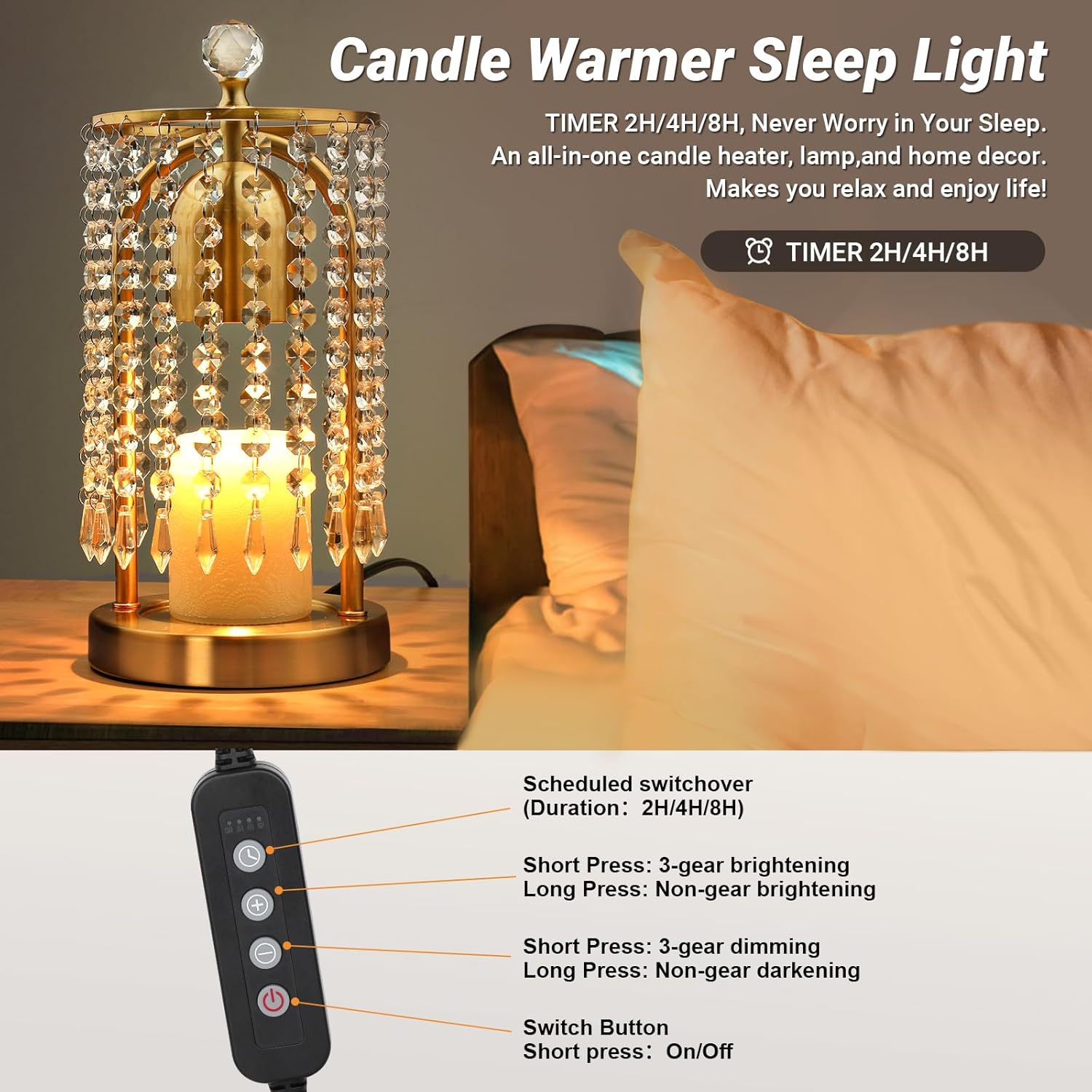 | Item Type Name | Candle Warmer Lamp with Timer Dimmable Crystal Candle Lamp,Compatible with Small Large Candles Beside Bedroom Home Decor Wax Melt Warmer with Bulbs Candle Holder Electric Lantern candle heater lamp |