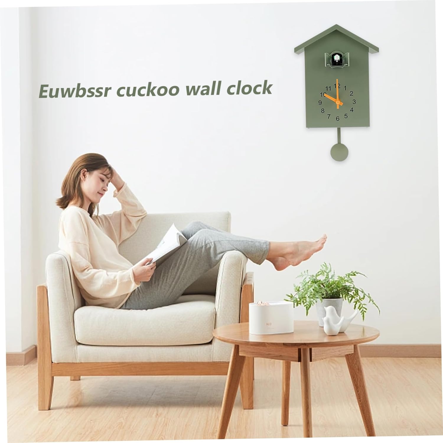 Description: Introducing our stunning Cuckoo Clocks with Cuckoo Bird, a on a timeless classic. This wall clock not only tells time but also serves as a beautiful piece of wall art that adds a touch of whimsy and charm to any living room, kitchen, or office decor. Inspired by traditional cuckoo clocks, this modern rendition features a delightful cuckoo bird that emerges from its cozy birdhouse on the hour, accompanied by the soothing sound of its melodic call. The bird's gentle movement and cheerful song create a captivating and enchanting atmosphere in your space. Crafted with meticulous attention to detail, this bird house clock showcases a contemporary design that seamlessly blends with various interior styles. The sleek lines, clean silhouette, and high-quality materials ensure that this clock becomes a statement piece in your decor, catching the eye and sparking conversation. Powered by batteries, this cuckoo clock offers convenience and flexibility in placement. You can easily hang it on any wall, allowing you to showcase its unique beauty in your preferred location. Whether it's in your living room, kitchen, or office, this clock adds a playful and artistic touch that elevates your space. Features:. Cuckoo Clocks. -Color: Green. -Material: ABS plastic. -Size: about. Movement: Silent movement. Battery: 3 * AA batteries (not included). Feature: The clock adopts intelligent time reporting (no time reporting from 21:00 to 6:00). Note: Manual measurement, please allow slight errors on size. The colors may exist slight difference due to different screens. Package Including 1 * Cuckoo Clock