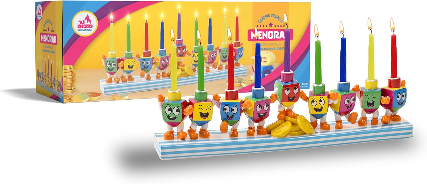 LIGHT UP THE NIGHTA favorite for so many, celebrating Chanukah is a highlight of the year. Of all the holiday traditions, kindling the Menorah is the main event. Lighting the candles brings families and friends together to celebrate.Ner Mitzvah's collection of kids menorahs for chanukah help you celebrate the festival just right. Choose from a dazzling array of themes, designs and colors. Whether your choice is classic or fun, vintage, traditional or modern, gold, silver or colorful, Ner Mitzvah has a modern menorah that suits your taste and style.PRODUCT FEATURES: Every Ner Mitzvah Minorah is: Safe and Sturdy Kosher Made with Premium Quality Materials Durable and Designed for Long Lasting UseCLASSIC HANUKKAH GIFTOur fun themed window menorah makes the perfect Chanukah gift for boys and girls. While the holiday of Chanuka lasts for 8 days a year, the menora or hanukiah have a deep symbolic meaning in Jewish culture & history that renders them part of our shared consciousness. Ner Mitzvah Childrens Hanukiah Menorah makes a great Jewish themed gift all year long.ABOUT NER MITZVAHFamily-operated since the 1940’s, Ner Mitzvah is an expert candle-maker, delivering a wide selection of products at the highest quality with personal customer service. Count on us for Shabbat, Havdalah, and Chanukah candles and oil lamps as well as related Judaica.