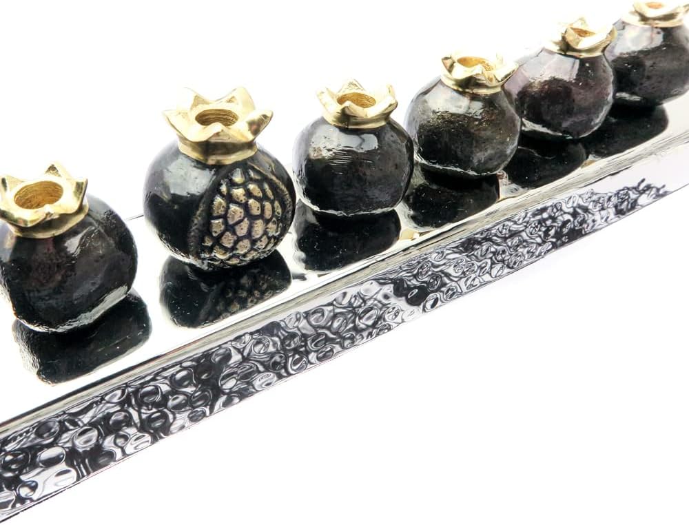 Illuminate your Hanukkah celebrations with the exquisite Yair Emanuel Pomegranate Strip Menorah. Featuring a vibrant and symbolic pomegranate-themed design, this menorah combines tradition with a modern aesthetic. The strip-style candle holders form a perfect row, with the raised Shamash in the center, symbolizing wisdom and Jewish heritage. Measuring 14.5 inches, it is perfectly designed to hold standard Hanukkah candles and add a unique touch to your holiday decor. Designed by renowned Israeli artist Yair Emanuel, this menorah is made to last and features a striking modern design inspired by Jewish tradition. Easy to clean with warm water, it ensures effortless maintenance and lasting beauty year after year. Whether lighting your home for Hanukkah or presenting it as a thoughtful gift, this menorah is a meaningful addition to any Jewish celebration. Perfect for Hanukkah, Bar or Bat Mitzvahs, weddings, or housewarmings, it brings elegance and warmth to any occasion.