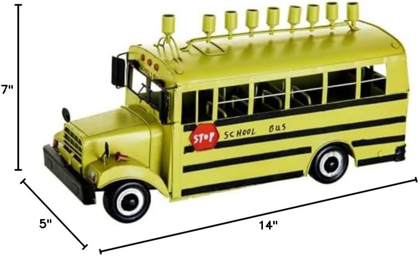 Introducing the Hanukkah Menorah Yellow School Bus - the ultimate centerpiece for your festive celebrations! Crafted from vibrant painted metal, this unique menorah is designed in the shape of a cheerful yellow school bus. With dimensions measuring 14" x 5" x 7", it's the perfect size to make a statement on any tabletop.This Hanukkah menorah is not just a stunning decorative piece, but also a thoughtful gift for children or even your favorite bus driver! Imagine the excitement on their faces as they light up each candle, bringing warmth and joy to the holiday season.Designed to accommodate standard candles, this menorah is ready to be illuminated with the flickering glow of tradition. Included with your purchase is a card featuring the Jewish blessing recited during the lighting of the menorah candles, ensuring you can fully embrace the spirit of Hanukkah.Whether you're looking to add a touch of whimsy to your festivities or searching for that perfect Jewish holiday gift, our Hanukkah Menorah Yellow School Bus is here to make this Chanukah truly unforgettable. Don't miss out on this one-of-a-kind treasure - order yours today and let the joyous celebration begin!Don't miss out on the opportunity to enhance your Shabbat experience and create lasting memories with our Set of two Crystal Candlestick Holders for Shabbat. Order now and bring a touch of sophistication to your sacred rituals.