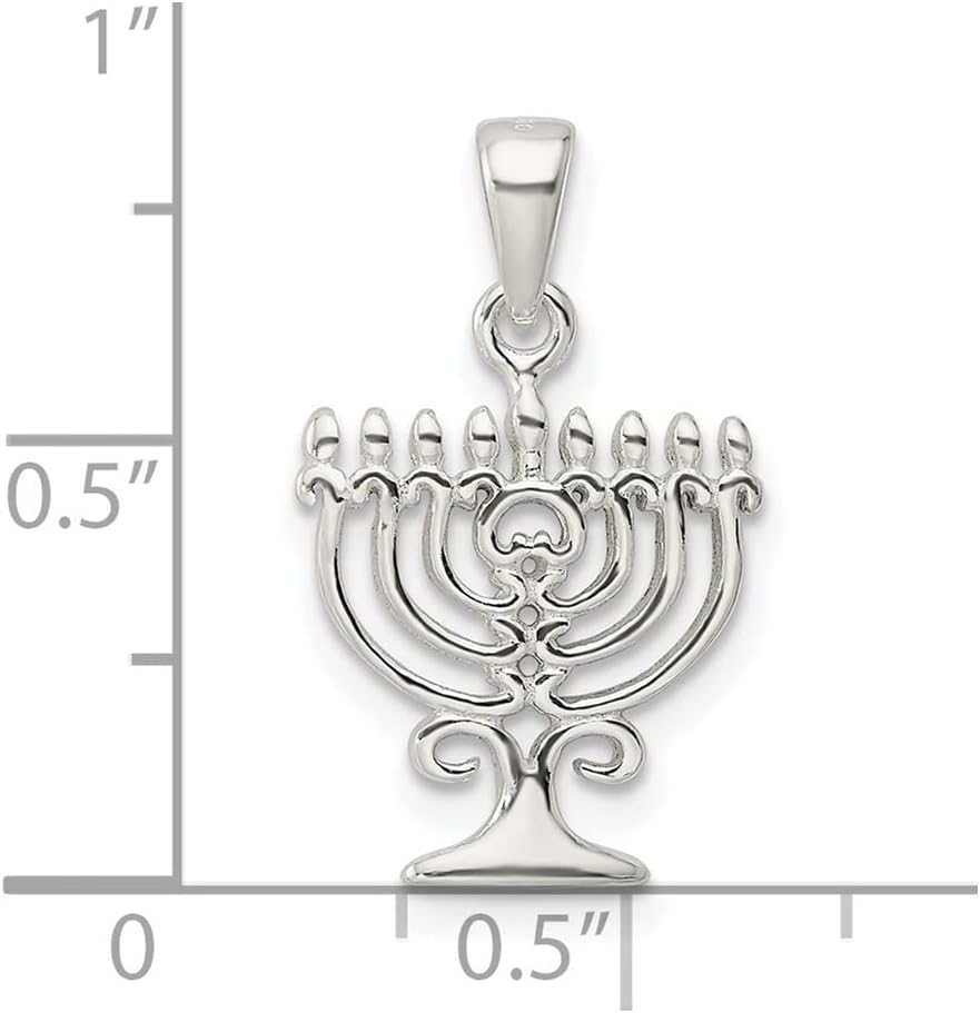 This attractive FJC Finejewelers 925 Sterling Silver Polished Menorah Charm 22 x 13 mm. This style measures 13.52 mm wide, 22.86 mm long.