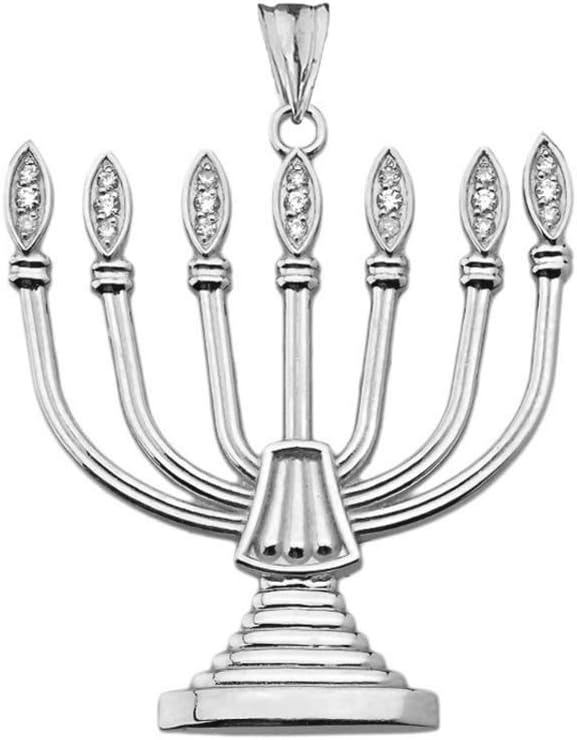 This 10k gold pendant features one of the most historical and mystical symbols we have today, the Menorah is a candelabrum used in Jewish worship, especially used at Hanukkah. This exquisite charm showcases 21 Diamond stones.This design reflects the Menorah’s exact purpose in the Holy Temple, which was to spread the light of Godliness to the entire world, not to illuminate the Temple itself. The seven lamps of the Menorah also allude to knowledge, with six of the branches representing human wisdom, guided by the center branch of Divine light. The Menorah’s design and the ideas it communicates endure as an inspiration for universal enlightenment.Individually hand polished to a lasting high sheen polish finish. This pendant is both of unsurpassed quality and impressive design.Available in White, Yellow or Rose Gold