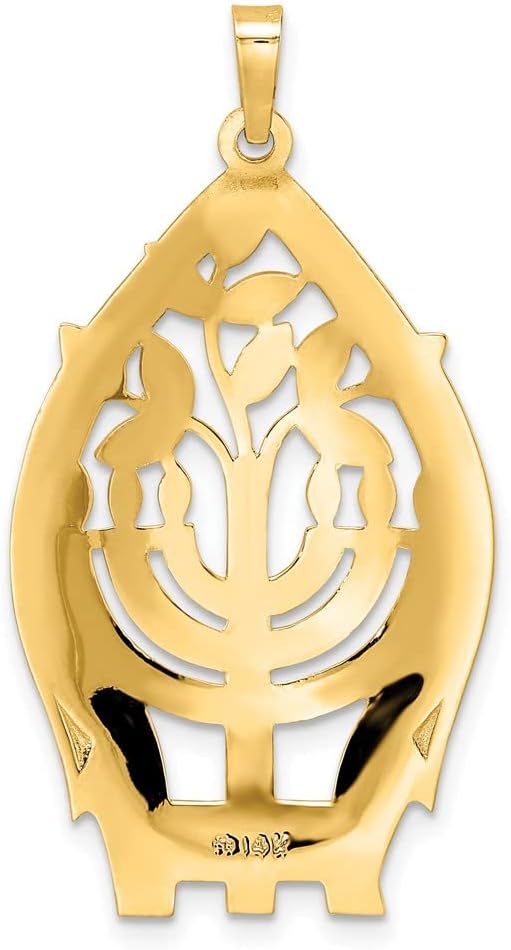 The dazzling FJC Finejewelers 14 kt Yellow Gold Polished Hollow Menorah Tree of Life Charm 40 x 20 mm. This style measures 20.85 mm wide, 40.00 mm long.