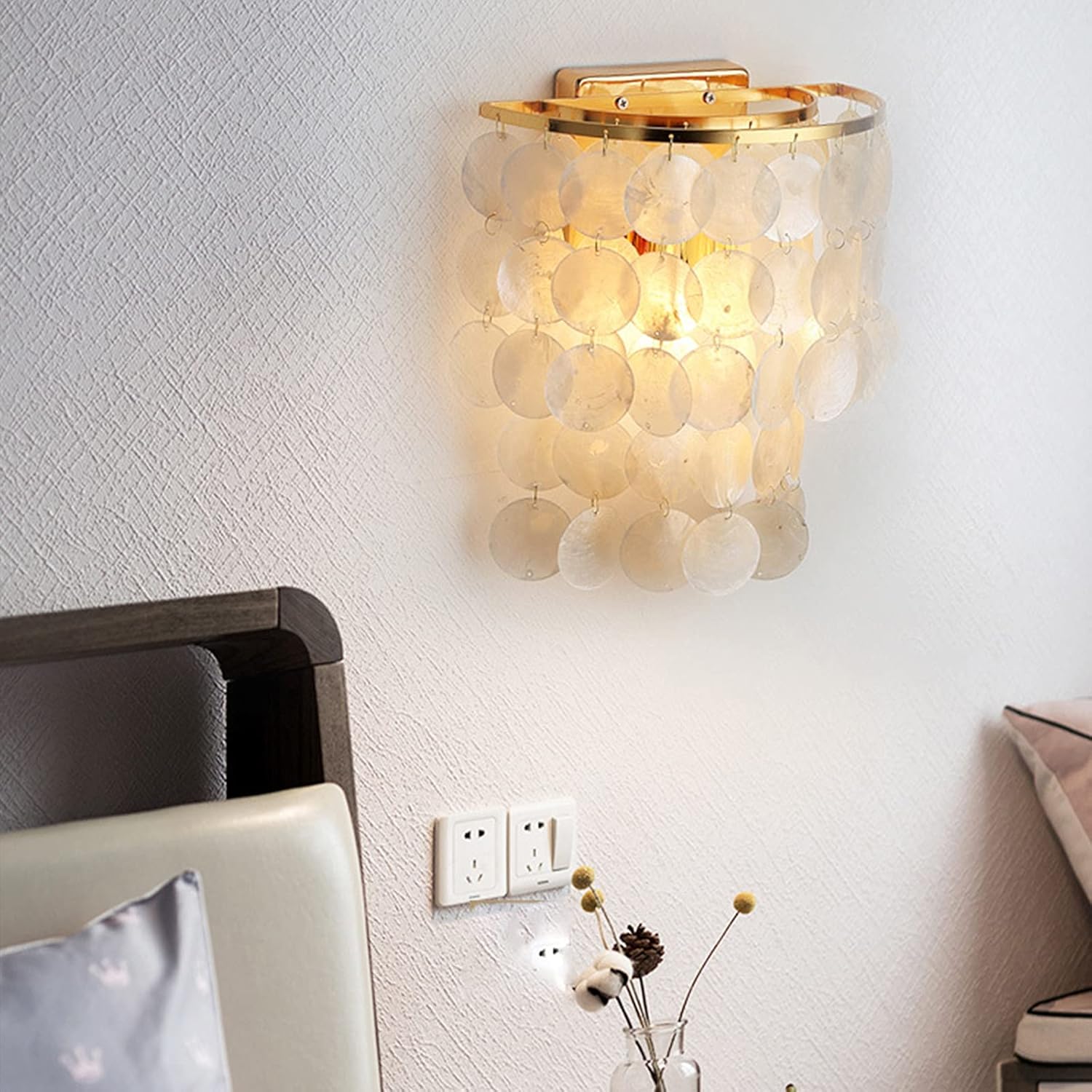 Thank You Very Much for Visiting My Shop, We Will Provide You with the Quality Service. Why choose our wall lamp? Simple and modern design can be more fashionable, make your house look bright, clean and spacious, and add a lot of elegance. Quality Assurance-Made of top materials, high-end modern lamps and home decoration, you deserve it! Pecifications: Style: Modern Color: Gold/ Chrome Size: 24x25cm(9x10inch) material: Metal Shade material: shell Bulb type: E26(without bulb) Light source type: incandescent bulb, LED bulb, energy saving bulb, CFL Voltage: 110-240 (V) Light source power: maximum 40W Irradiation area: 5-10 square meters Scope of application: living room, bedroom, dining bar, bedside, stairs, corridor Package includes: 1 x Wall lamp 1 x Mounting screw Reminder: 1. Before installation, maintenance, repair, and cleaning, be sure to turn off the power. 2. Make sure to tighten the terminal securely to prevent loosening or leakage. 3. When installing this wall lamp, in order to ensure safety, it is recommended that the installation be guided by a professional electrician. 4. Measure the Product by Hand, the Error is About 1-2 Cm.