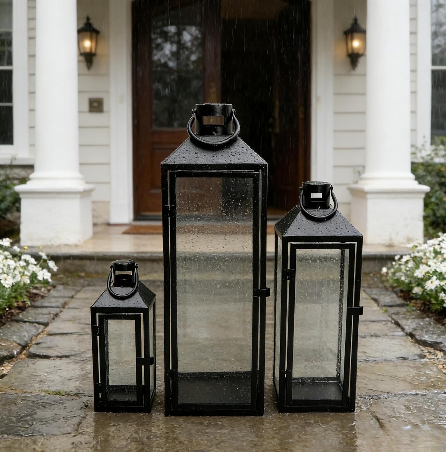 Lanterns Decorative Tall Large Black Metal Candle Lanterns Set of 3- Modern Farmhouse Decor for Indoor,Outdoor,Tabletop,Porch (With Glass)