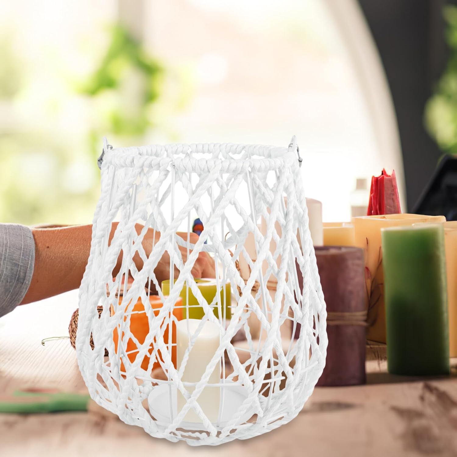 Package List 1 x Lantern Characteristics -Material:Iron and cotton thread -Product Info: lamp -Color:White -Size:26.00X23.00X23.00cm/10.22X9.04X9.04in -This geometric candle holder can make your house full of more comfortable and warmer atmosphere on farmhouse home decor. -With excellent craftsmanship, this geometric candle holder is not easy to wear and damage, very practical in use tea lights candles holder. -Featuring an artistic modeling design, creative and , this candle holder is perfect decoration for your home farmhouse candlestick holders. -You can place the candlestick anywhere, such room, dining room, temple, etc. anywhere you want home decor. -Using good material and fine craftsmanship, this candle holder is reliable and for long serving life.Goods Descriptionindoor lantern holder And the well-made candle stand is sturdy and more .candlestick holder The candleholder is delicate and romantic, very suitable for wedding layout decoration use.romantic candlestick holders This candleholder is made of iron and cotton thread material which is and strong.candles holders decor It has an artistic Geometric