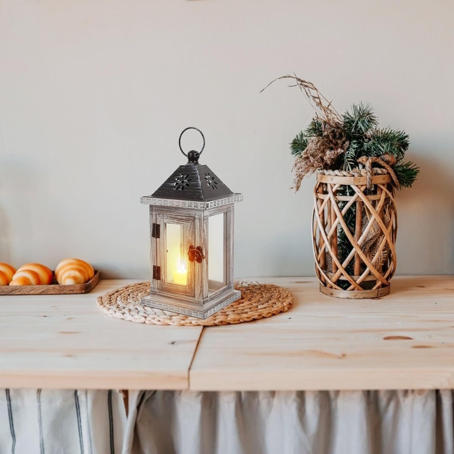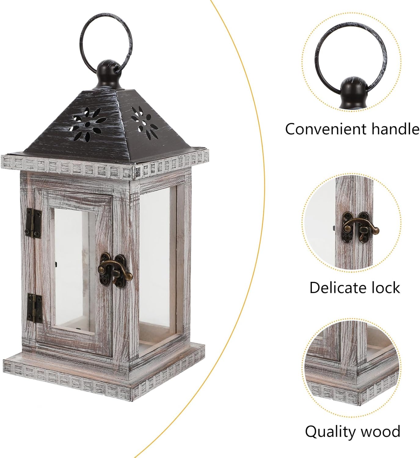 Package Include 1 x candle holder Features - Color: As Shown. -Product Info:American candlestick ornaments - Material: Wood + Iron + Glass. - Size: 27.00 x 12.50 x 12.50 cm/ 10.61 x 4.91 x 4.91 inch. - You can send it to your family and friends as a . They will be happy outdoor candle holder. - The candle holder is very unique and beautiful, adding artistic flavor to your home retro decor. - Lanterns come with sturdy metal hanging to easily lanterns on the wall or outside in the garden candle stands decorative. - Rustic candle lanterns are durably made with natural wood frames and metal and can be used indoors or outdoors lanterns. - Rustic wood lanterns are durably made with natural wood frames and and can be used indoor or outdoor decorative candle holders.Goods Informationspell candle holder Our rustic wooden lantern set is made with beautifully distressed natural wood, clear glass, and a sturdy metal, can enjoy your lanterns indoors or outdoors.vintage candlestick holders Lanterns come with sturdy metal hanging for easy carry from one place to the next