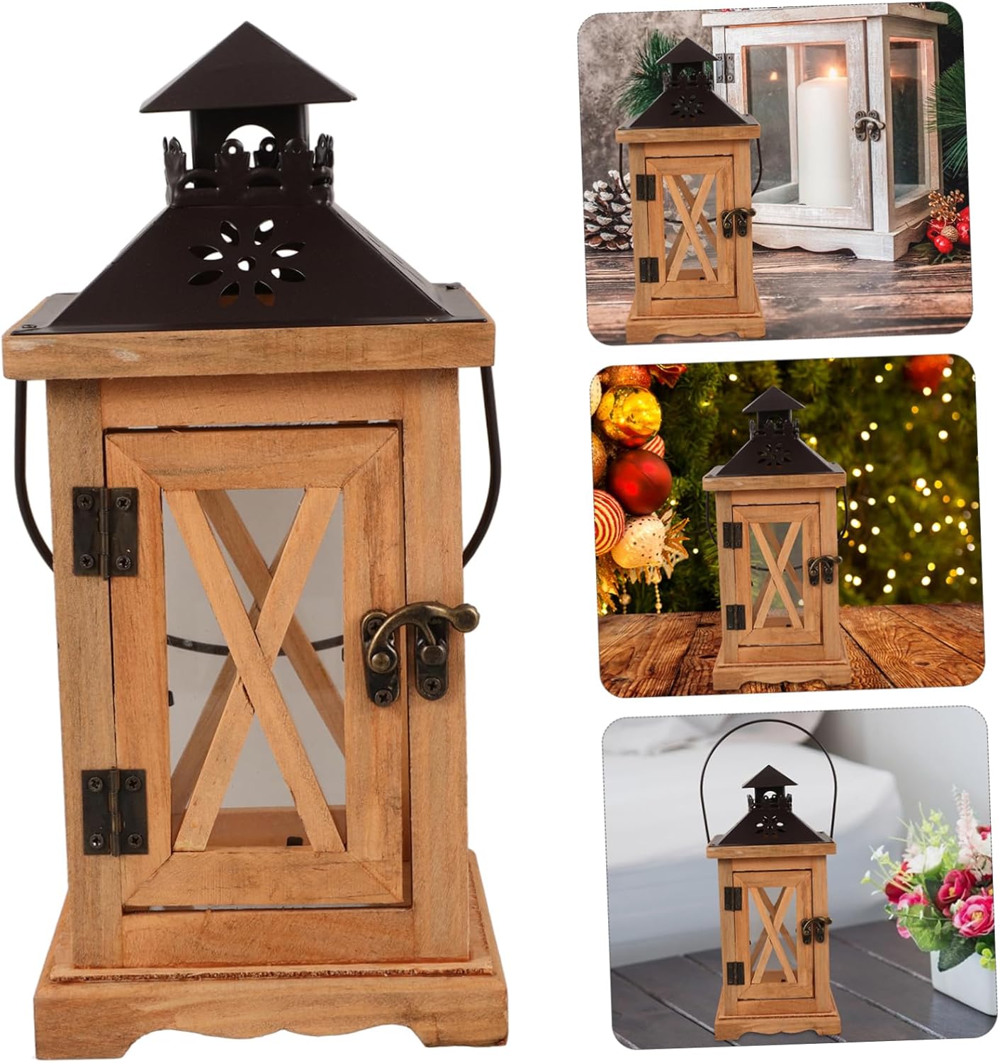 Package Include 1 x Candle Holder Features -Size:28.00X12.80X12.80cm/11.00X5.03X5.03in wedding lantern -Color:Multi decorative lantern -Material:Wood desktop lantern decor - This candle lantern has craftsmanship, can be used as a candle holder or decor on shelves or desk indoor lanterns. - Use this candle lantern to celebrate the festival and important wedding and create very romantic atmosphere vintage lantern. - Widely used in family parties, weddings, desk decorations to create a warm feeling indoor lantern holder. - Make a great home decor or centerpiece for many different styles and themes such as rustic, beach, nautical. table lantern - Simple and retro decoration, this candle lantern can add atmosphere to life, which is decorative and romantic. farmhouse lanternGoods Informationfarmhouse lantern decor This decor can not only be applied for practical use as a candle holder, but also used to be a candle lantern.rustic lantern The candle lantern structure and craft make it looks unique and distinctive.lantern decor This candle lantern is made of wood material, decorated with unique and artistic shape design