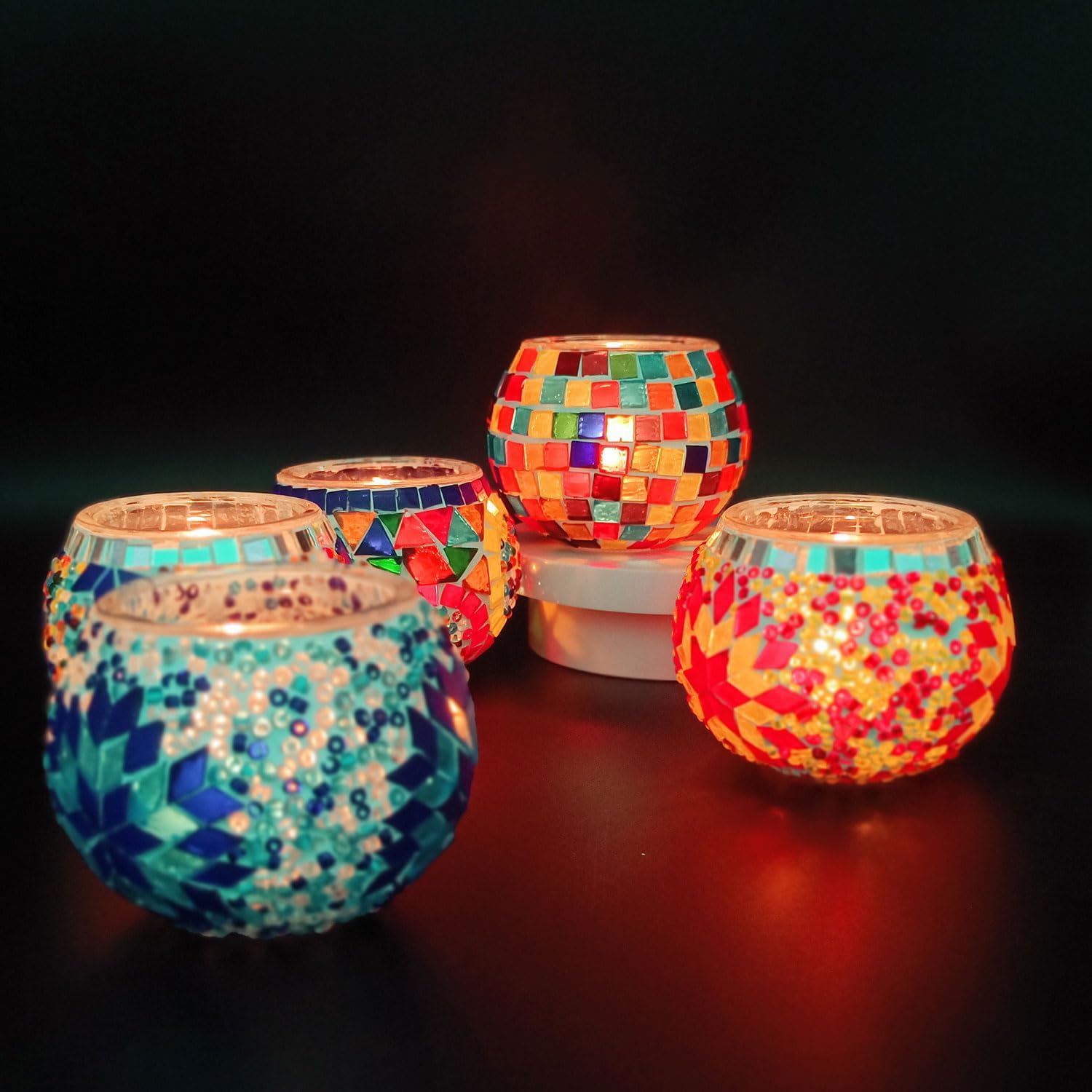 From Mizut, a brand specializing in home decoration, each piece blends European traditional craftsmanship with modern design concept, the candelabra is the perfect expression of the brand's spirit and is inspired by the holiday flag of European towns, who skillfully incorporate this element into a glass ball ball. Each side of the candle holder is inlaid with different colored mosaic glass pieces that are colorful and iridescent like a rainbow. When the candle lights pass through the glass panels, it projects fantastic lights around the fairytale world. Whether placed on the coffee table in the living room or bedside table in the bedroom, it will be a bright landscape, made of high quality glass material, good light transmission and very durable. The mosaic glass is specially treated to prevent fading and keep it looking new even after extended use. All materials comply with environmental standards, safe and non-toxic. The base of the candle holder is non-slip and can be placed on a smooth table and not easy to slip This candle holder will add artistic flair to your home and create a romantic and warm atmosphere for any occasion. For example, in candlelight dinner, it is the best backdrop to make two people sweeter time; it will be a focus when a family gathering and make the party more fun. In addition, the candle holder is safe and convenient, so you don't have to worry about the safety hazards caused by open flames
