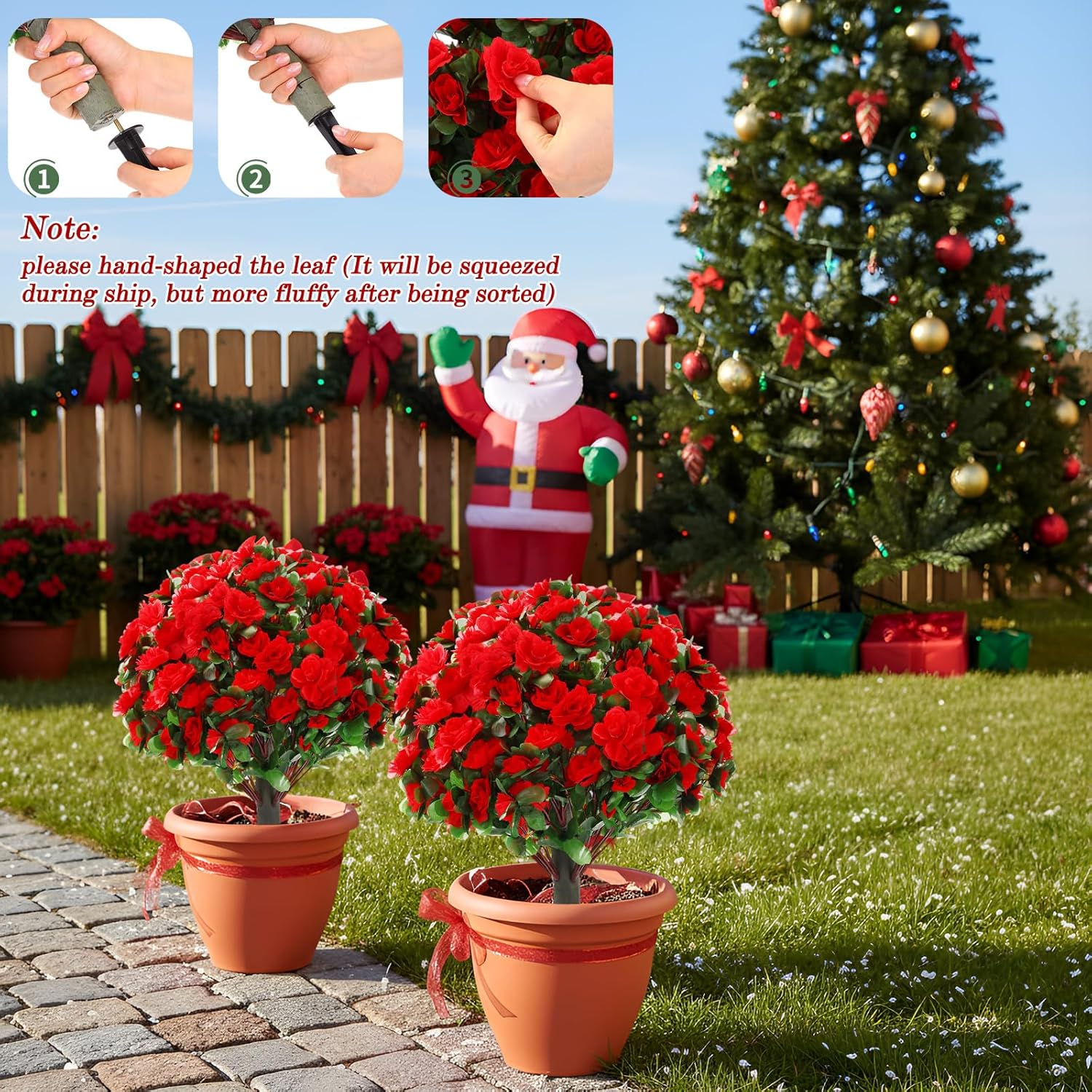 Features: No tools needed! Simply unbox, fluff the lush mum topiary balls, attach the spike, and place. The sturdy stem pushes effortlessly into ground or planters, while the realistic flowers stay securely in place Ideal for porches, gardens, offices, or balconies, these Artificial Geranium Topiary Balls with Flowers Set topiaries adapt to any space. Place them in matching pots or spike directly into soil for instant elegance. A stylish gift for housewarmings or seasonal decor Specifications: Material: plastic Color: colorful Size: 24 inches tall Package includes: 24" Artificial Geranium Topiary Balls with Flowers Set of 2 with Ground Spike Notes: Manual measurement, please allow slight errors on size. The color may exist a slight difference due to different screen displays.