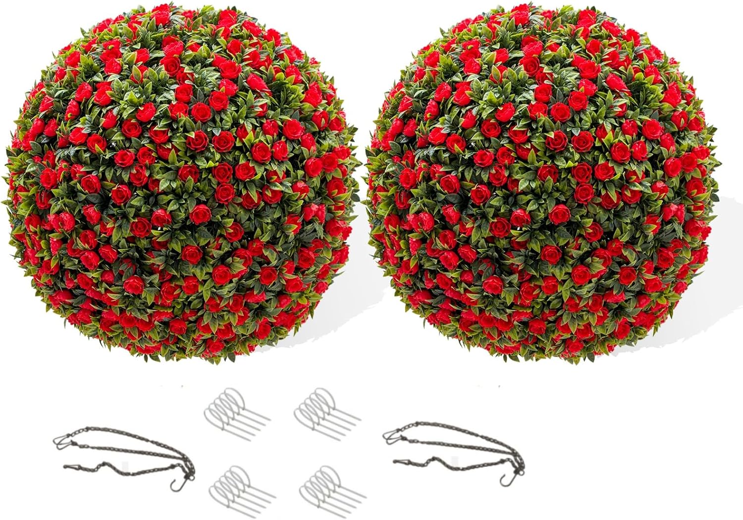 Name: Rose Topiary Ball Size: 15/17/21 InchMaterial: PEPackage List: 4*halves balls,2 *chains,20* zip tiles