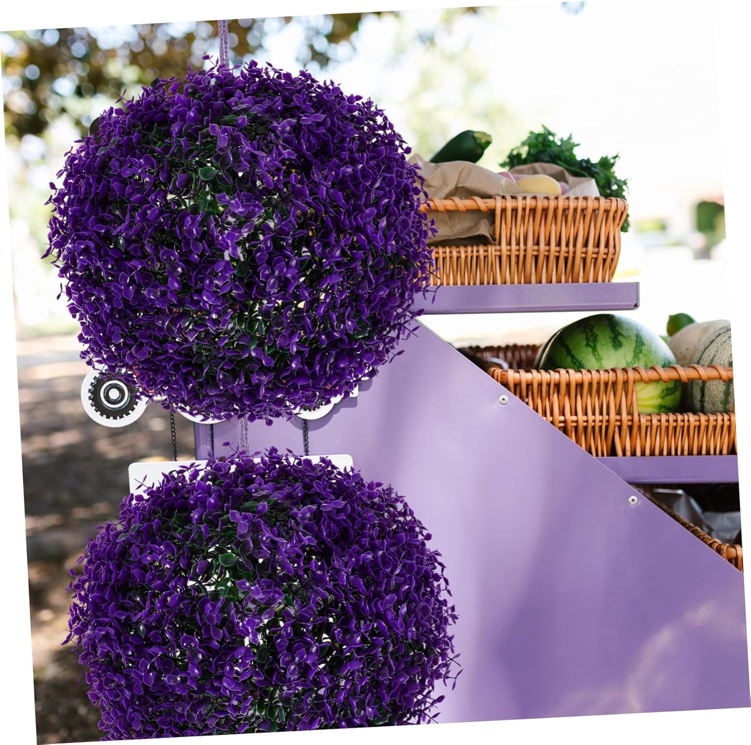 Package List 1 x hanging grass ball Characteristics - Color: Purple decorative foliage balls - Size: 35.00X35.00X13.00cm/13.76X13.76X5.11in fake plant ball -Product Info:Simulated Eucalyptus Decoration -Material:Plastic sphere plant - The hanging grass ball always maintains a perfect spherical shape, which is decorative and ornamental topiary balls flowers large. - Manufactured with premium plastic material, hanging grass ball is and practical to use topiary balls outdoor. - Suitable for home, restaurant, birthday party, wedding, stage, coffee shop faux floral topiary balls. - With lifelike shape and color design, this grass ball decor is natural outside green floral balls decor. - The hanging grass ball does not require any moisture, does not require any trimming faux plant ball.Goods Descriptiongrass ball plant Lightweight and realistic, it can add natural atmosphere to your house.plant balls decorative Are you still looking for artificial plant ball hanging ornament? Then, our simulated grass ball is the for you.garden spheres for planters The grass ball provides an excellent vivid feeling for indoor or outdoor