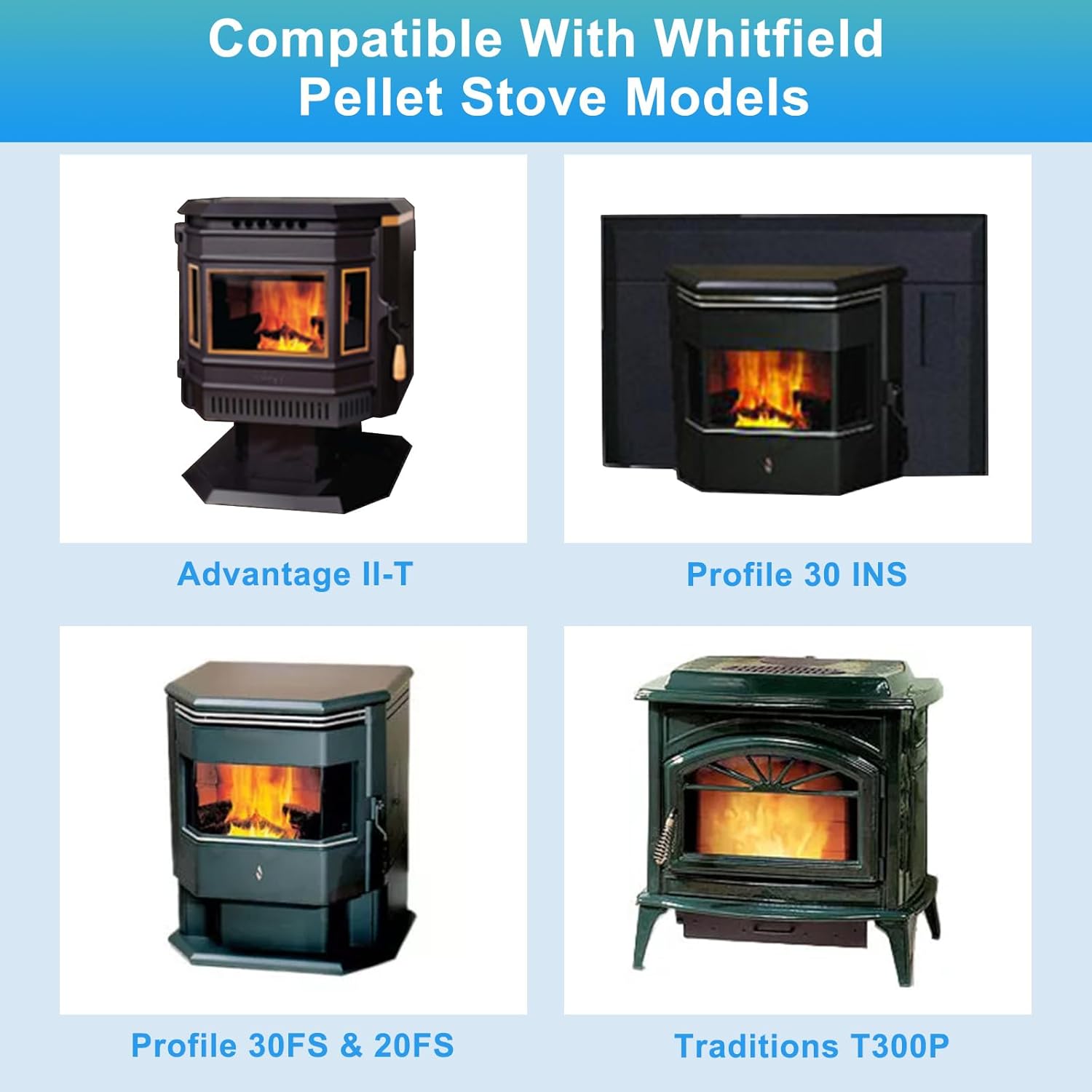 -Why Do You Need To Replace A New BlowerThe original whitfield convection room air blower 12146109 was wearing out after years and made a loud squeak every time it was used, whitfield pellet stove was not burning great and you old fan was causing the stove to overheat. The new whitfield profile 30 convection blower replacement will give you a 100% improvement, it blows much quieter and a bunch more air flow, works very well distributing the warm air. What a difference in heating the space.-Fits Whitfield Models:Advantage IAdvantage II INS (WP2)Advantage II (WP2)Advantage II-T Classic (WP2)Advantage II-T (WP2)Advantage II-T Insert (WP2)Advantage III (WP2)Advantage III Insert (WP2)Advantage Plus FS (WP7)Advantage Plus Insert (WP7)CascadeLegendOptima 2 FS (A02)Optima 3 FS (A03)Optima 3 INS (A03)Prodigy I (WP3) Serial number 1001 - 2281 ONLY!Prodigy II (WP3) Serial number 1001 - 2281 ONLY!Profile 20 FS (P9) Serial number 7495 - 7494 ONLY!Profile 30 FS (P10) Serial number 11905 - 11904 ONLY!Profile 30 INS (P10) Serial number 11905 - 11904 ONLY!Quest Plus FS (WP4) (WILL NOT FIT QUEST)Quest Plus INS (WP4) (WILL NOT FIT QUEST)Traditions T300P (P11)Traditions T301P (P11)Traditions T305P (P11)Traditions T308P (P11)Traditions TP300Traditions TP340-Provide Heat To Your RoomAftermarketwhitfield pellet convection blower fan blows air through the exhaust plenum and through the openings on the front of the stove to provide heat to your room.-Ultra Quiet EngineeringIf you want peace and quiet with low vibration…you found the right motor. This 12126109 blower motor is so quiet, you won’t know your stove is on.-Buy With Confidence1 Year warranty through manufacturer with our no hassle replacement guarantee.