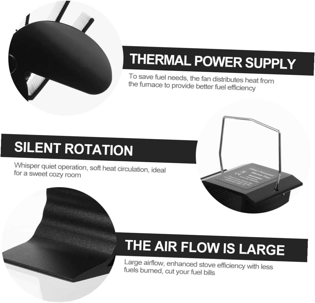 Package List 1 x thermal power fan 1 x manual Characteristics -Product Info:Thermal fan - Size: 18.00 x 12.40 x 9.40cm/ 7.07 x 4.87 x 3.69 inch. - Material: Metal. - Color: Black. - The hotter the hotter the base of the fan gets, the faster the fan turns Fireplace Fan. - The more air the fan circulates into the room. It will slow down and stop as the stove cools Family Fireplace Fan. - Just position the stove fan on a smooth flat surface of your stove up, near the side or back of the . It will working when the stove surface hot Heat Powered Stove Fan. - Our stove fan is able to circulate the heat around the fireplace, balance the temperature of the kitchen, keeps you a comfortable room in winter Thermal Power Fan. - The fan base and vane are made from high grade material which will not rust or corrode.Goods DescriptionThermal Power Fan The fan runs faster as the temperature rising, and turns slowly and stop when temperature cools down.Heat Powered Stove Fan No extra electricity needed! Generate its by converting the heat from wood stove into electricity, no running cost.Home Supplies Easy to use! Been placed on the up of stove and it will works automatically