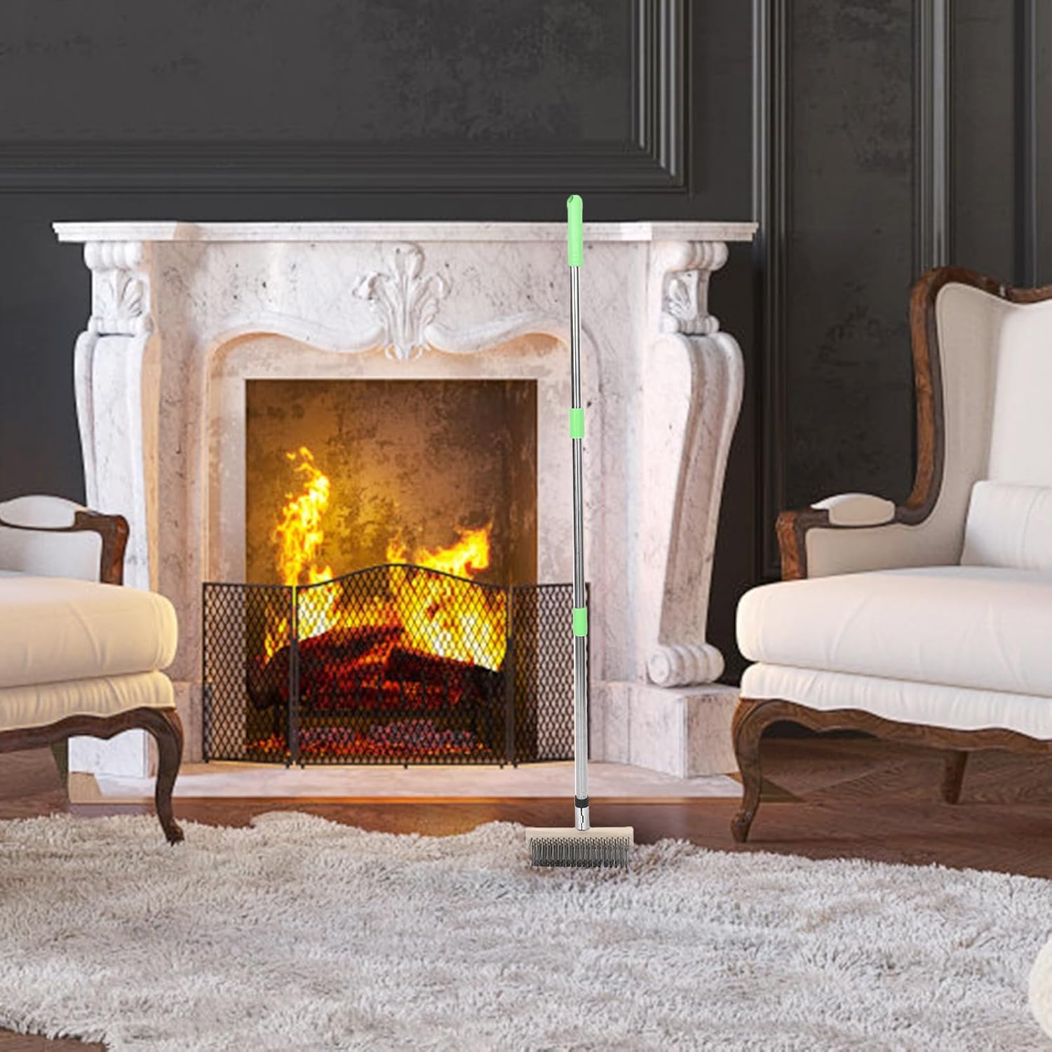 DescriptionWith an ergonomic long handle for safe operation, this fireplace hand brush efficiently cleans wood stove brushes, fireplace screen cleaning brush, and grill grates wire brush broom requirements. The steel wire chimney brush construction is suitable for both commercial and home fireplace sweeper brush use. It shines as a fireplace pipe brush or spare hearth brush, meeting diverse stove fireplace brush needs.Features-Color:Green-Material:Stainless steel-Size:125.00X20.00X10.00cm/49.21X7.87X3.94in-Deep Fireplace Cleaning: Fireplace brush tool ensures thorough cleaning of fireplace screens, hearths, and stove pipes using strong wire brushes for cleaning hard to reach areas effectively-High Temperature Durability: Hearth wire brush broom is engineered to endure frequent exposure to heat, providing a reliable dryer vent cleaner option for homes with active fireplaces-Extended Safety Handle: The fireplace cleaner brush’s long handle minimizes heat exposure and risk by enabling remote operation, protecting users during chimney sweep tasks-Space Efficient Storage: Small hand broom and stove pipe brush feature makes it perfect for storing alongside chimney cleaning equipment without consuming excessive space-Versatile Appliance Use: This fireplace cleaning kit works seamlessly for wood stoves, grill grates, and chimney pipes, delivering exceptional results for multiple cleaning requirements