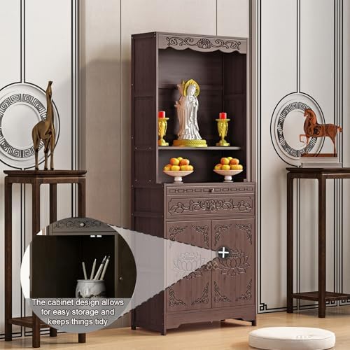 Elevate your spiritual practice with our exquisite Meditation Altar, designed with a stunning vintage Chinese aesthetic that enhances any environment. This versatile altar serves as a perfect meditation table, allowing you to create a tranquil space for reflection and mindfulness. Ideal for displaying a variety of cherished items, our altar accommodates Buddha statues, artifacts, antiques, figurines, and keepsakes, making it a beautiful centerpiece for your home or meditation room. Its elegant design not only complements your decor but also fosters a serene atmosphere for spiritual growth and personal connection. Crafted with care, our altar is available in two sizes to fit your needs: - Dimensions: 43*38*170cm (16.9*15*66.9in) - Dimensions: 69*38*170cm (27.2*15*66.9in) Package Includes: - 1 Altar Table Before making your purchase, please confirm the dimensions to ensure a perfect fit in your space. Note that slight variations in size may occur due to manual measurement. Additionally, product images showcase the altar only, and colors may vary slightly due to different monitor settings. Our Meditation Altar is not just a piece of furniture; it’s a valuable addition to your spiritual journey, creating a dedicated space for peace and reflection. Embrace the beauty and functionality of our altar and transform your meditation experience today.