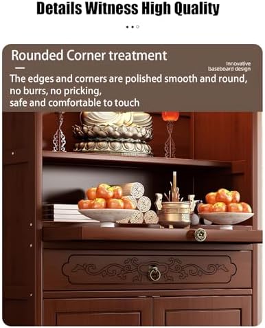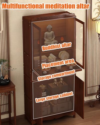 Introducing our stunning Personal Altar Table, a perfect blend of elegance and functionality designed to enhance your spiritual practices. This beautifully crafted meditation altar table features a vintage Chinese aesthetic that seamlessly complements any home décor. Use it as a dedicated space for your cherished items, including Buddha statues, cultural relics, and collectibles, creating a tranquil environment for personal reflection. Not just for spiritual use, this versatile altar table is ideal for displaying a variety of collectibles such as sports memorabilia, toys, figurines, antiques, dolls, action figures, souvenirs, models, and sculptures. Whether you aim to create a calming meditation corner or a vibrant showcase of your favorite items, this altar table provides the perfect solution while adding a sophisticated touch to your space. **Specifications:** - Name: Meditation Altar Table, Chinese Style God of Wealth Offering Platform, Altar with Acrylic Door - Color: Walnut - Sizes Available: - 38cm / 15in - 52cm / 20.5in - 68cm / 26.8in **Package Includes:** - 1 Altar Cabinet **Notes:** 1. Please verify the size before purchasing as manual measurements may result in a slight error of 0-3cm. 2. Product images may not include items other than the altar table. 3. Color variations may occur due to different monitor settings. 4. The provided dimensions are for reference; actual product size may vary, so please refer to the product itself. Elevate your spiritual journey and enhance your home with our versatile Personal Altar Table, where functionality meets artistic expression.