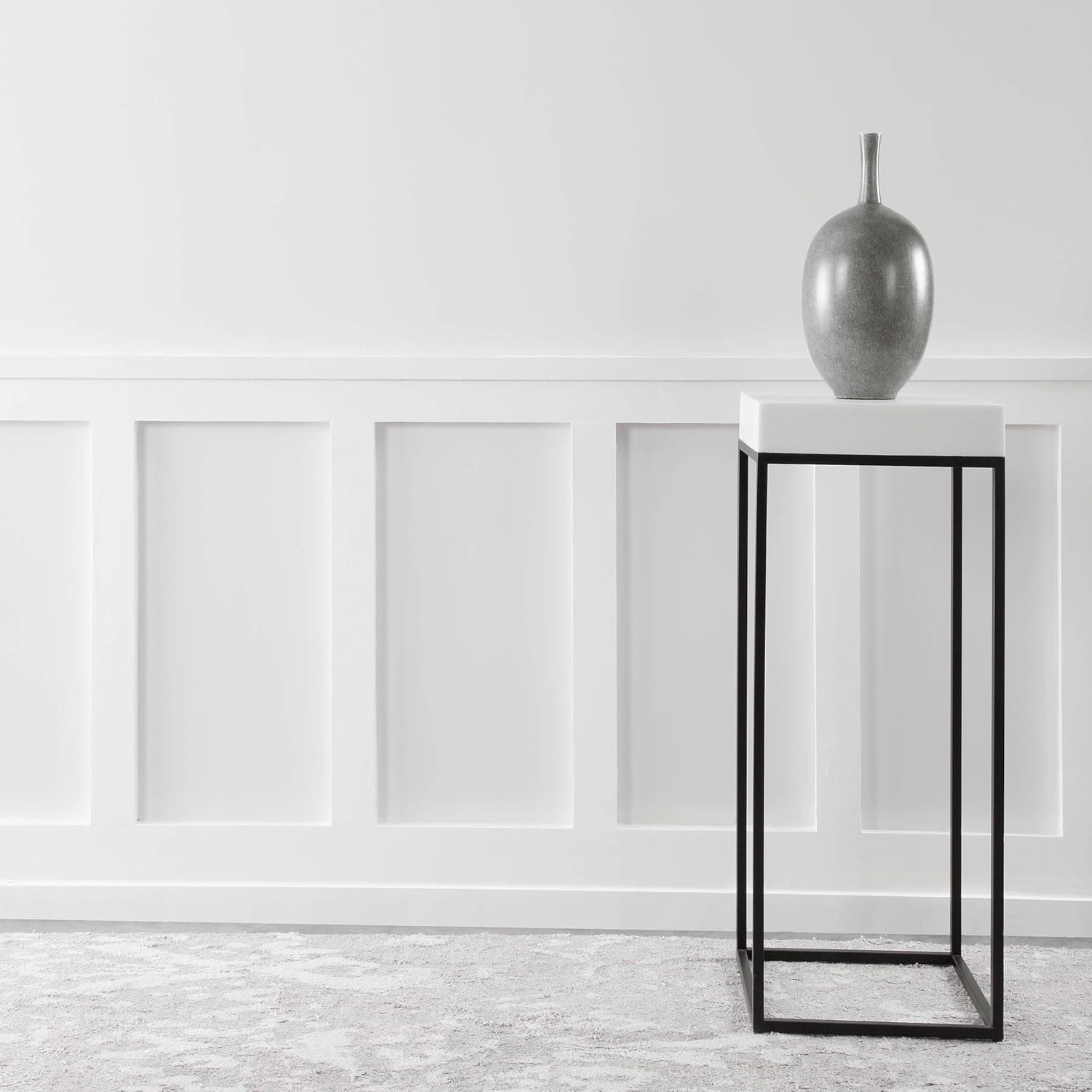 This Modern Plant Stand Combines A White Marble Look, Atop A Simple Steel Base Finished In Aged Black. Coordinating Accent Table Available Separately.