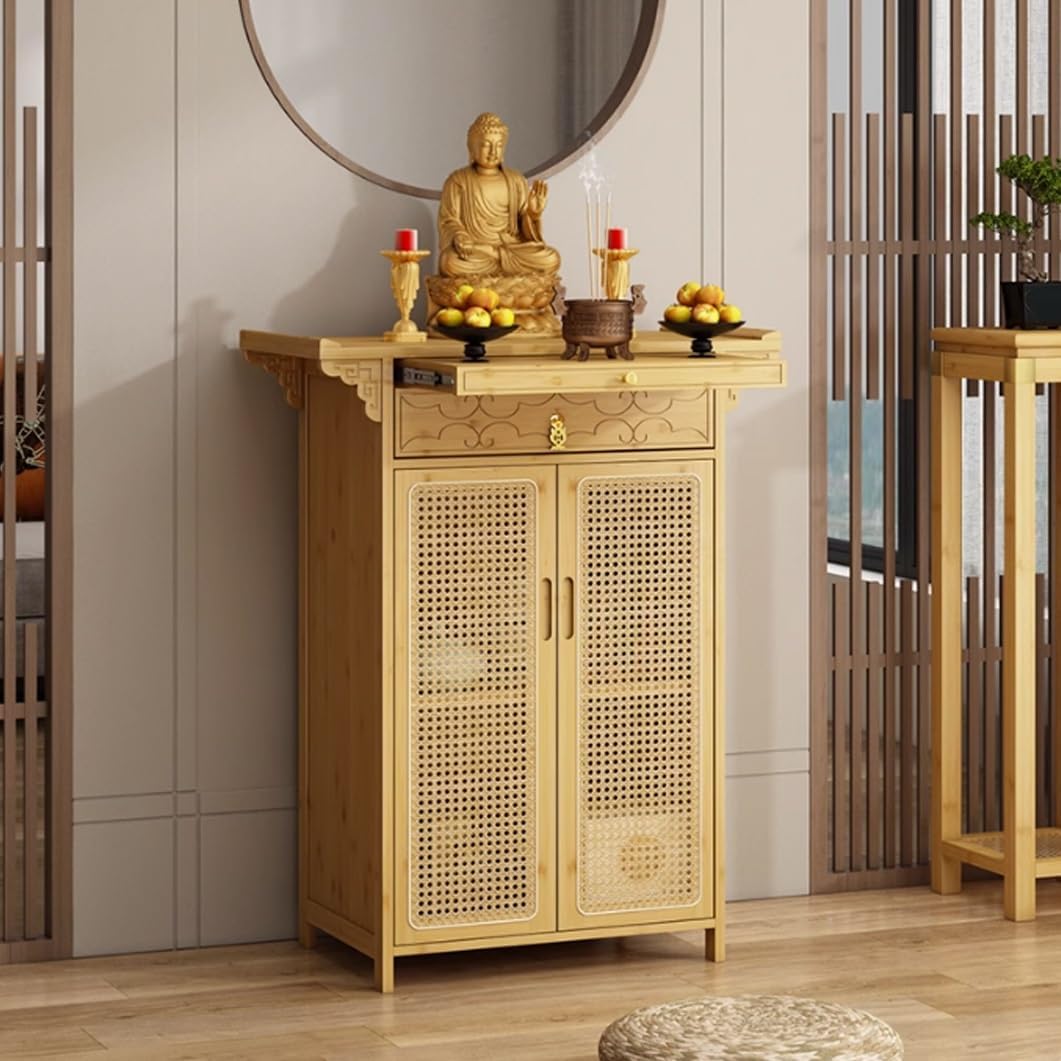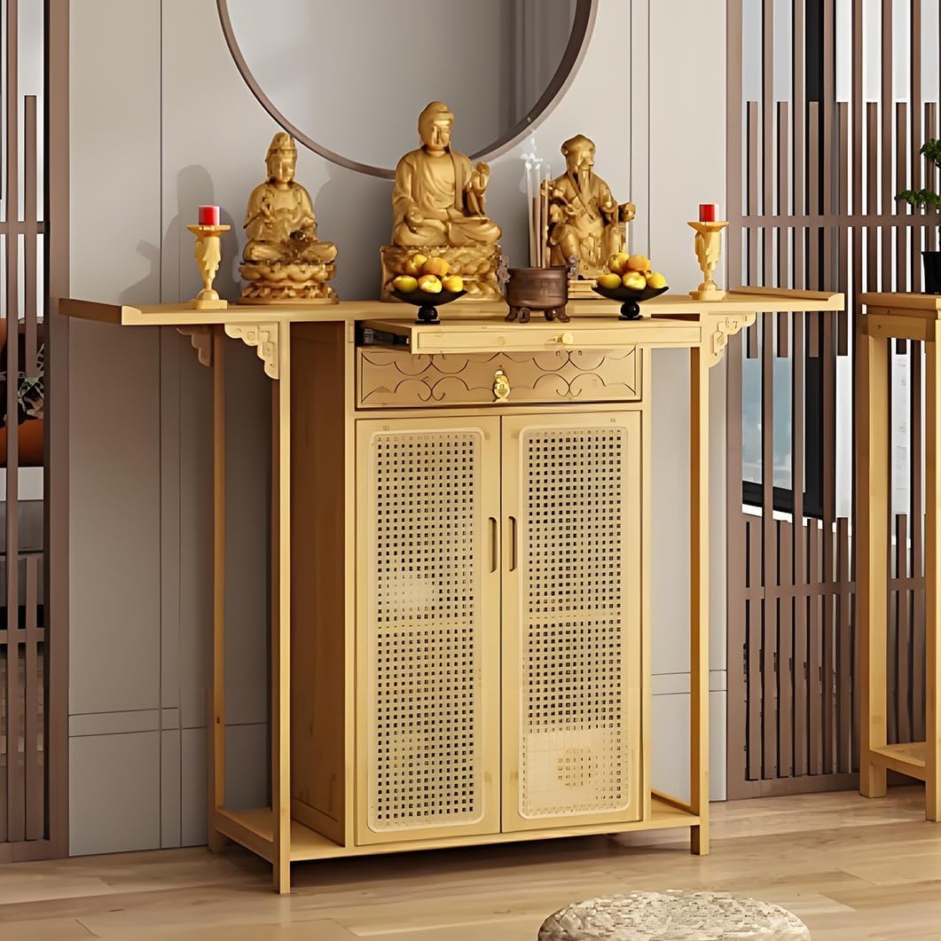 Welcome to YVYKFZD store:- Exquisitely carved and double-sided heightened anti-fall design, perfect for Buddhist prayers, tea ceremony and divination. Resin rattan cabinet door, elegant and atmospheric, large-capacity cabinet storage, effective dust and moisture resistance- The unique design allows it to be easily integrated into any space, meeting your diverse needs and adding a touch of tranquility and elegance to your lifeSpecification:● Name: Personal shrine altar table, meditation storage table, day of the dead altar stand, buddha statue offering table, pet ashes house pooja table, home incense table buddhist shrine prayer stand riser● Material: Bamboo● Color: Brown, black walnut, wood color● Size: 80x40x101cm/31.4"x15.7"x39.7", 100x40x101cm/39.3"x15.7"x39.7", 120x40x101cm/47.2"x15.7"x39.7", 140x40x101cm/55.1"x15.7"x39.7"● Purpose: Can be used for prayer, incense burning, divination, offering, meditation, worship, ancestral hall, temple, worship, sacrificePackage Includes:1 * Personal Shrine Altar RackNote:1. Please check the size before buying. Due to manual measurement, an error of 0-3cm will occur. Hope for understanding2. The product photos do not contain items other than the product3. Please note that due to different monitors, there may be slight color difference, please understand