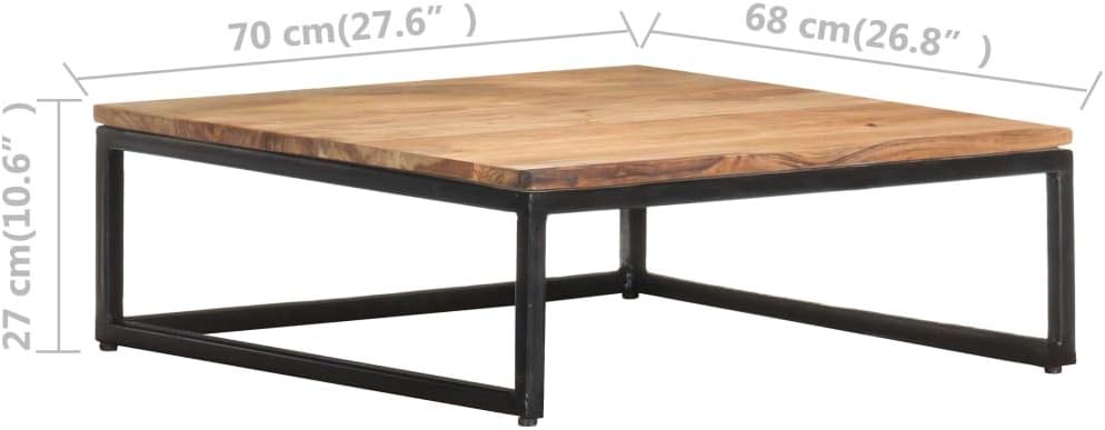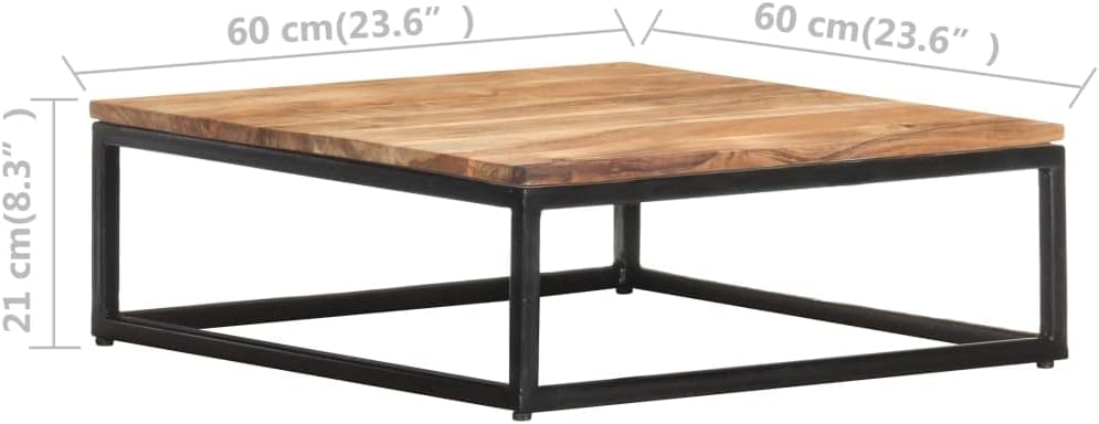 Add an industrial look to your living space with these wooden nesting coffee tables!The coffee table is made of solid acacia wood, which is a hardwood with dense grains. This beautifully-designed center table is stable, durable and eye-catching. Additionally, the exquisite craftsmanship and beautiful wood grains make every piece slightly different from the next. The black powder-coated iron base provides additional stability and sturdiness for the tables. Additionally, the small table can be stored underneath the larger one to save space.Important note: Colours and grains may vary from piece to piece, making each piece unique; the delivery is random.Material: Solid acacia with a natural finish, powder-coated ironLarge table dimensions: 27.6" x 26.8" x 10.6" (L x W x H)Small table dimensions: 23.6" x 23.6" x 8.3" (L x W x H)Nesting tablesAssembly required: NoDelivery contains:1 x Large table1 x Small table