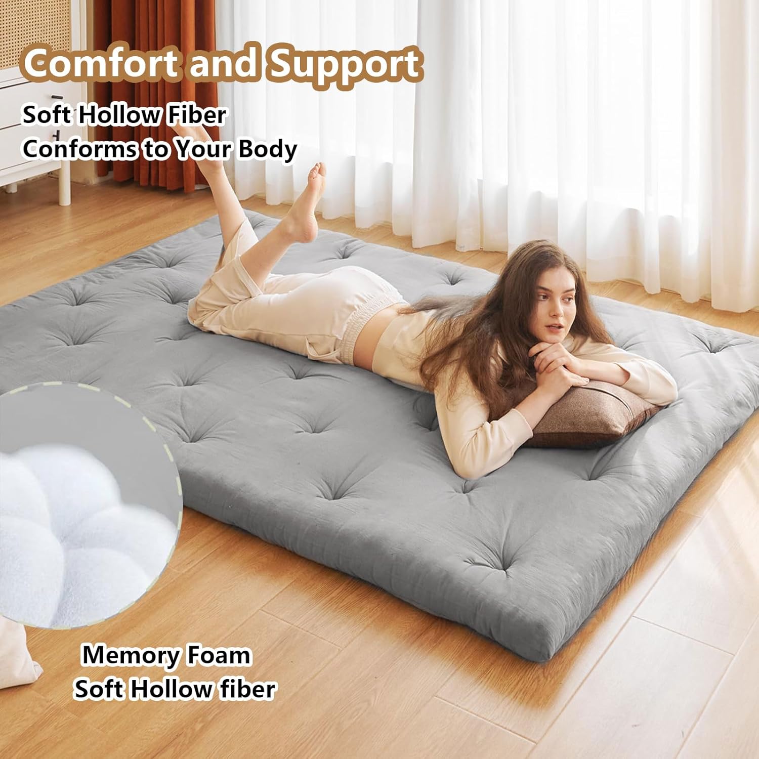 This japanese floor mattress futon mattress can be used as a comfortable lounger, camping mattress, tatami mat, floor mat, sleeping mat, children's play mat, makeshift bed, or futon mattress—perfect for a variety of occasions. The tatami mat's foldable design makes it easy to carry and store, making it perfect for bedrooms, living rooms, balconies, dorm rooms, and for traveling or entertaining guests.Package: 1 Japanese Floor Mattress Futon MattressNote:Due to photography lighting, slight color variations may occur.Due to measurement variations, product dimensions may vary by 1-3 cm. Please refer to the actual product for details.