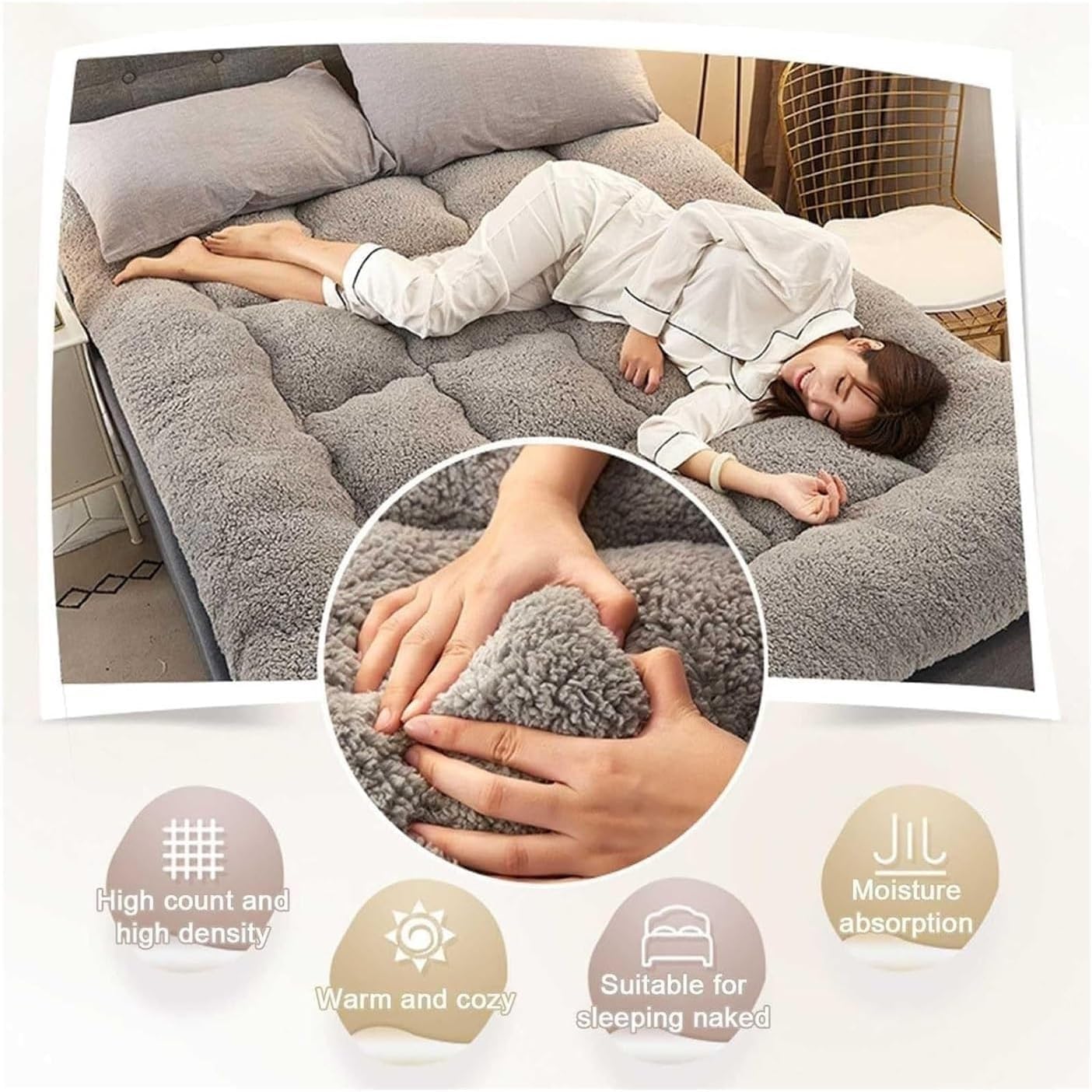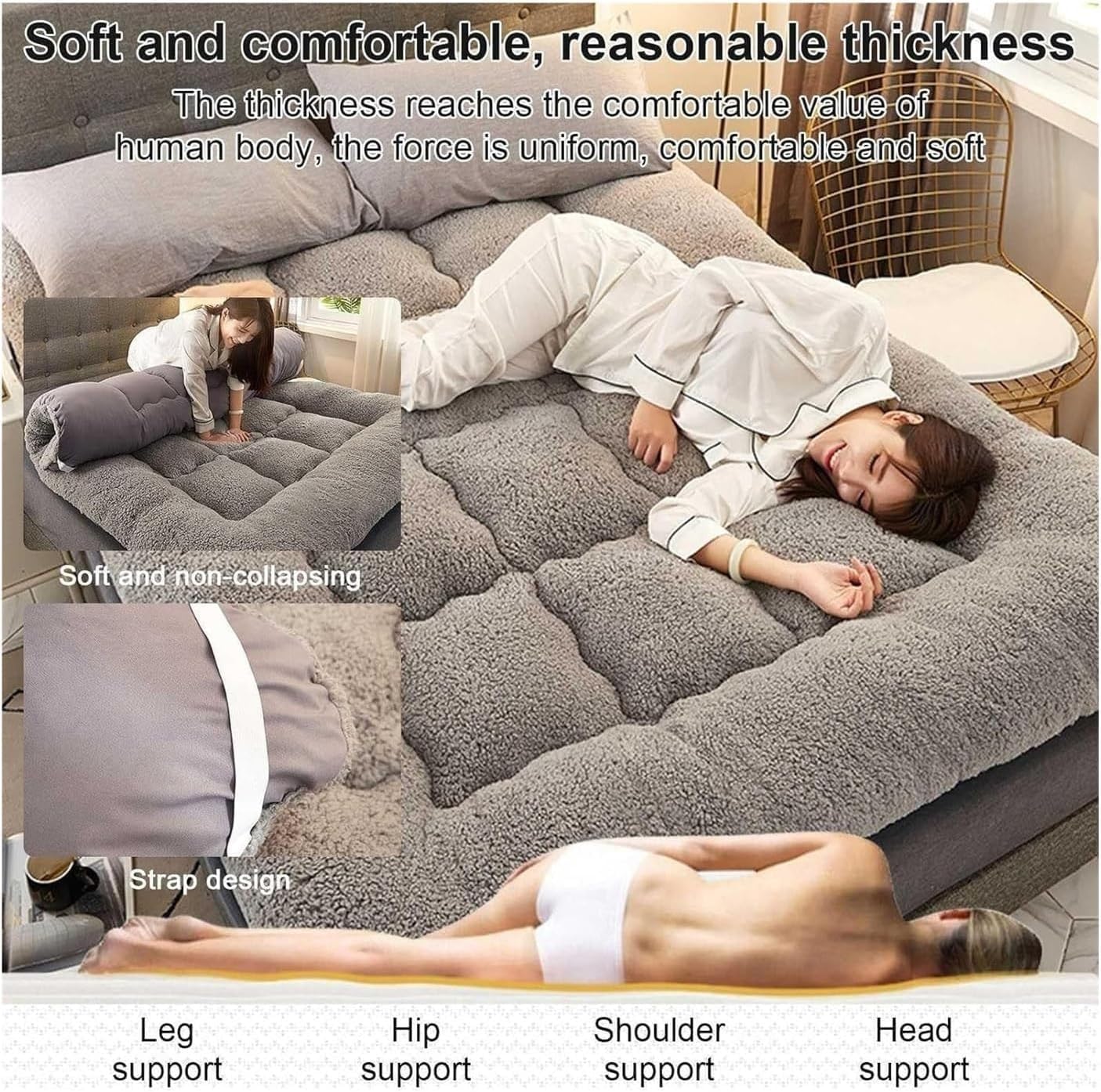 Product parameters: Product name: Thickened mattress Product fabric: Lamb woolScope of application: four seasonsSuitable for: home use, bedrooms, guest rooms, camping, car beds, etcPacking list: 1 * Mattress Notice: 1. It is recommended that you roll up the adult mattress and place it in the sun, which will help restore the thickness2. Due to manual measurement, please allow slight size errors, thank you for your understanding3. The mattress needs to be folded and compressed when packing. When the product arrives at your place of residence, there may be creases, so it will take 2 to 3 days to return to normal thickness after opening the package