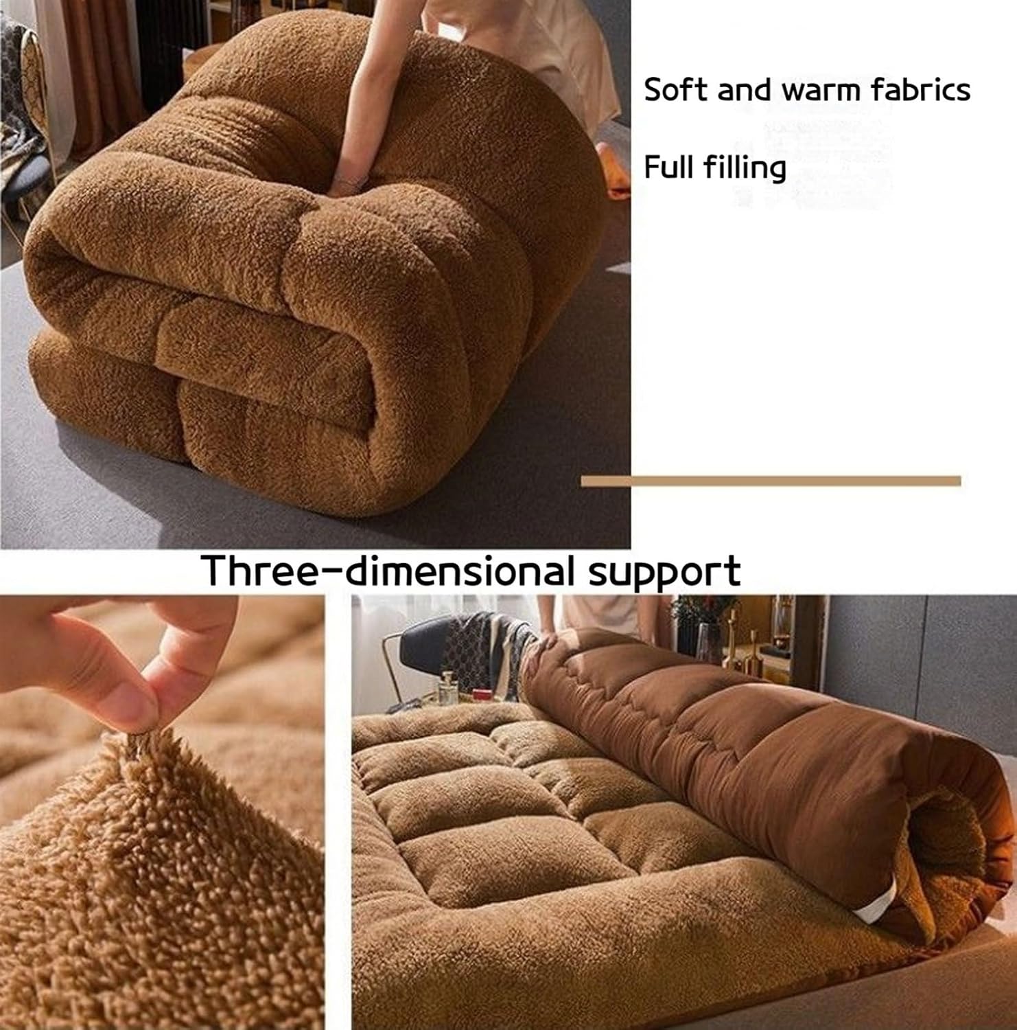 Allows You To Get A Comfortable Night Is Sleep Wherever You Go.simply Unfold The Bed On The Floor In Any Room,Mobile Home,Or Tent For A Comfortable Night Is Sleep. This Bed Easily Accommodates All Your Sleeping Needs Then Folds Neatly Away For Storage In Seconds.Features:Name: cashmere mattressFilling: polyester fiberBack material: A version cashmere B version skin-friendly cottonSuitable for: all seasons1. The futon mattress is ergonomically designed to evenly distribute your weight, reducing pressure on your shoulders, hips and feet while perfectly shaping your body.2. Our tatami mattress is soft and breathable, super comfortable. It can be folded in the wardrobe and put on the floor to sleep.3. The environmentally friendly material protects the spine and provides you with high-quality sleep.4. The mattress is not easy to deform; it can be folded and stored5. Applicable scenarios: dormitory, family, hotel6. Bedroom futon/living room futon/tatami mat/floor mat/sleeping mat/tent mat/guest mattress/futon/nap matParcel:Mattress X1Precautions:1. Our products adopt vacuum compression, and there is a rebound process after the product arrives, which takes about 3 to 5 days. After using for a period of time, it is recommended to expose the mattress to the sun to restore the thickness of the mattress and extend the use time.2. Please allow 1-2cm differences due to manual measurement.