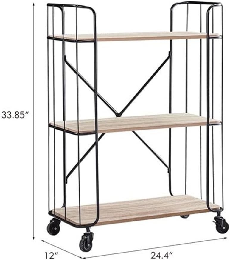 3-Tier Ample Storage & Multipurpose Shelves: Classic 3-tier structure for your counter space, the sturdy top shelf can hold kitchen appliances.Movable & Lockable Design: 4 flexible wheels, 2 of which are lockable, allow the cart table to go where you go to take advantage of your cabinet space. You can effortlessly wheel it to living room, office or bedroom as a kitchen appliance cart, coffee stand, small rolling bookshelf or small bakers rack. And the locks will keep it perfectly still when needed.Solid & Sturdy Construction:the kicthen cart is constructed by P2 MDF Vintage Board and Black Metal Frame.Fast Installation & Easy Cleaning: the utility cart table is need to be assembled by yourself. And with wet cloth you can wipe dirty stain easily from the smooth surface.Product Size:24.4''L x12''W x 33.85''HClear manual, all screws, and tools are offered in the package. You can set up the whole drawer dresser within 15-30 minutes by following the manual step by step.Material: P2 MDF Board Metal FrameProduct Size:24.4''L x12''W x 33.85''HPackaged Size: 32.28''L x 6.3''W x 113.58''HPackage Include:1 x kitchen cart1 x Accessories Bag1 x InstructionNotes:Due to the light and screen setting difference, the item's color may be slightly different from the pictures.Please allow slight dimension difference due to different manual measurement.Quiet wheel, 360 tyrants, make the dining car easily unloaded, walking as if