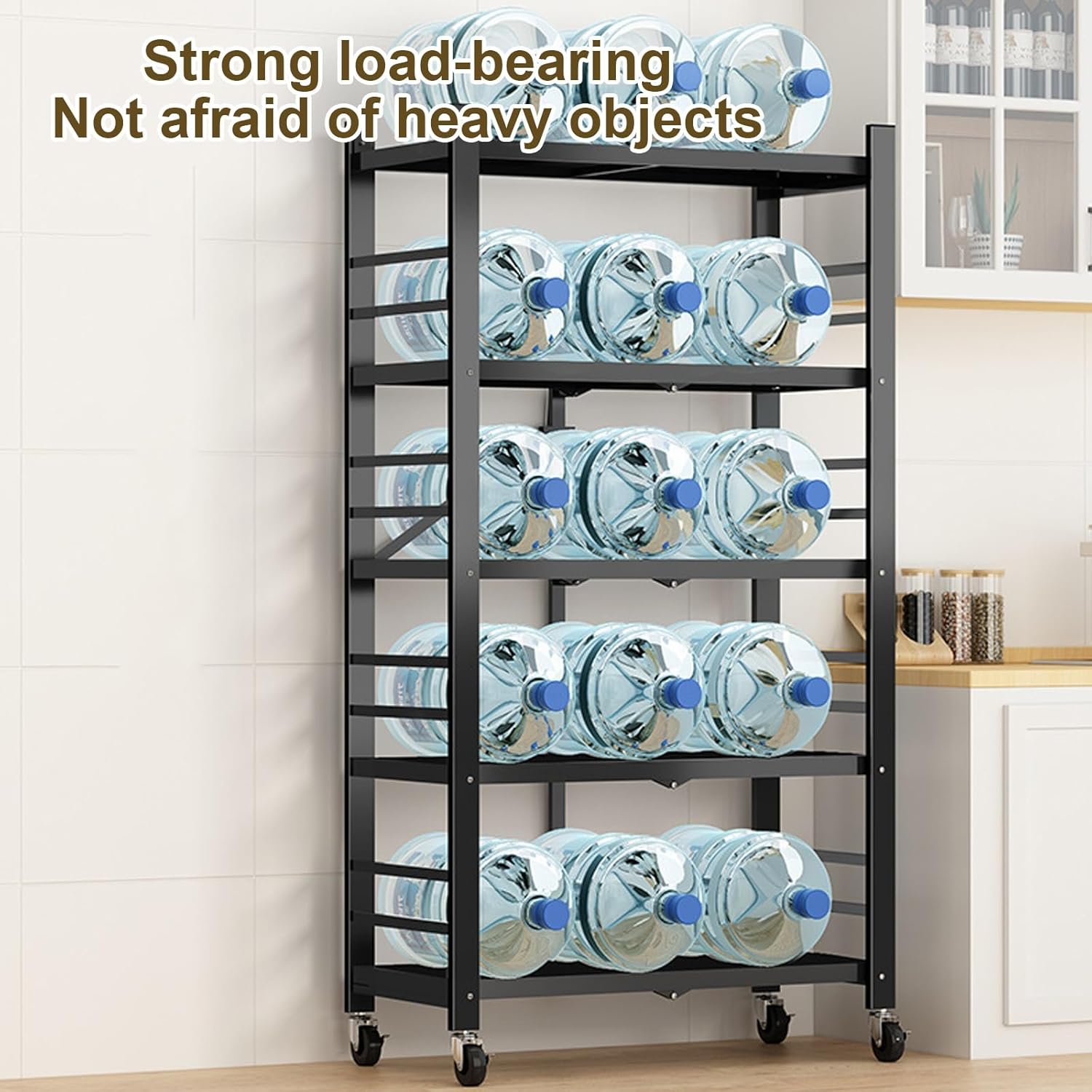 kitchen storage rack:The Kitchen Baker Rack is perfect for kitchens, dining rooms, garages, bathrooms and more. Perfect for use as a microwave shelf, coffee bar, wine rack table, kitchen storage rack or kitchen cart. Features The kitchen baker's rack is designed with all-metal construction for rugged durability and long life. This kitchen storage cabinet is sturdy enough to keep your air fryer, rice cooker and other large kitchen items inside. With 4 strong universal wheels, this coffee bar cabinet can be easily move from one room to another. The raised feet also make it easier to clean without accumulating dust. Easy to use, it adopts a folding design and is ready for use. It is 8CM wide after folding, saving more space. Specification Color: White, Black Material: Carbon steel Number of Shelves: 3/4/5 Assembly Required: No Overall Size(W)*(D)*(H): 3 tier: 71*34*85 cm/28*13*33 in 4 tier: 71*34*125 cm/28*13*49 in 5 tier: 71*34*156 cm/28*13*61 in Package Includes: 1 x Kitchen shelf 4 x Universal wheel