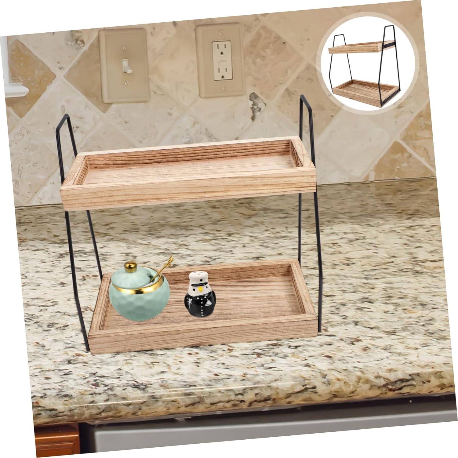 Package Include 1 x storage rack Features -Size:35.50X33.00X17.00cm/13.95X12.97X6.68in bathroom counter organizer men -Color:Multi wooden makeup organizer -Product Info:Wooden storage rack -Material:Wood, stand station - Simple structure, strong bearing capacity, can store and organize more items, bringing you great using feeling small bathroom counter organizer. - This storage rack is made of iron and wood materials, ensuring its durability and making it easy to maintain kitchen counter shelves. - Ideal for organizing not only makeup but also other items, providing a neat and tidy storage solution bathroom organizer. - Maximizes the available storage space in your kitchen while ensuring that your living space remains clean and organized boho bathroom. - The multifunctional tabletop design of this storage rack makes it suitable for various uses, providing versatility and convenience kitchen countertop organiser.Goods Informationbathroom counter tray The wooden desktop storage rack is made of iron and is suitable for bathroom and kitchen use.wood makeup organizer It provides ample storage space with its two-tier design.coffee station organizer rack The multi-functional design makes it suitable for various places.coffee mug shelf The material ensures stability and reliability