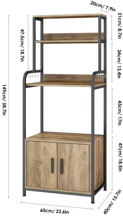 | Model Name | Iron Standard Baker's Rack with Microwave Compatibility, 58.7'' H X 23.6'' W X 15.7'' D. |