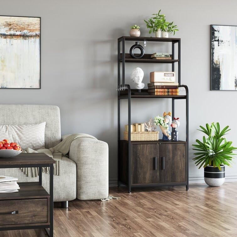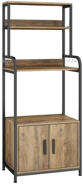 This is an all-in-one baker's rack that keeps your kitchen organized. It comes with 4 spacious open shelves for your toaster, microwave, coffee maker, and other kitchen supplies. And there is a double-door cabinet at the bottom, which provides a lot of storage space for storing various foods. Both natural and vintage shades bring an elegant country style to your home.