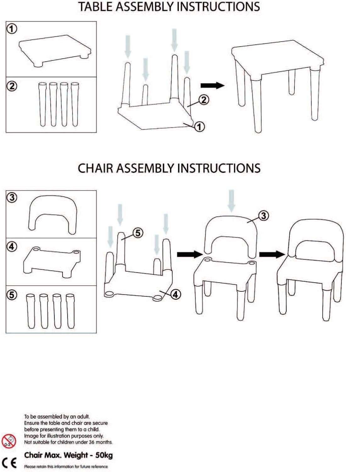 Introductions: Kids Plastic Table and 4 Chairs Set is the perfect size for children to eat, read books, color, do arts and crafts, play board games, and just have fun.The table and chair set is ideal for your toddlers bedroom, playroom, or the living room.This piece of furniture is easy to assemble and the sturdy table and chairs are great for kids ages three to eight.Construction on this engineered wood table and chair set offers solid support and long-lasting durability.The height of this furniture is just right for toddlers and preschool-aged children.Giving your little one a table and chair set at their size gives them a sense of control and helps them learn independence. Note: 1.When receiving the goods, please confirm the product according to the listing of instructions. Once you find Less pieces, please provide relevant pictures to contact us. We will deal it in the time. 2.Please install goods with the instruction manual. 3.It is recommended that the installation should not be too tight to adjust easily. After the structure is installed, firm the interface for more stability. Specifications: General Information: 1. Material: Plastic Table: 1. Color: Yellow 2. Weight Capacity: 110Lbs / 50Kg 3. Dimensions: (19.7 x 19.7 x 18.1) / (50 x 50 x 46)cm (L x W x H) Chair: 1. Color: Red Yellow Blue Green 2. Weight Capacity: 110Lbs / 50Kg 3. Dimensions: (10.2 x 11.42 x 17.72) / (26 x 29 x 45)cm (L x W x H) 4. Seat Dimensions: (11.42 x 10.24) / (29 x 26)cm (L x W) 5. Backrest Height: 7.5 / 19cm 6. The Height From Seat to Floor: 9.5 / 24cm Package Includes: 1 x Table 4 x Chairs
