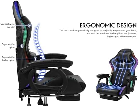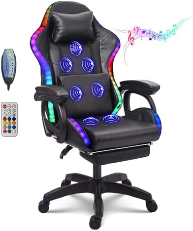 Experience the ultimate gaming and office comfort with our advanced gaming chair, designed to elevate your gaming sessions and work productivity. This innovative chair features integrated dual speakers that deliver an immersive surround sound experience, perfect for getting lost in your favorite games or enjoying a movie night. The dynamic RGB light strip adds a vibrant touch, allowing you to customize the colors to match your mood or gaming setup. To combat fatigue during long hours of play or work, the chair is equipped with a vibration motor offering various massage modes, easily adjustable via remote control. Plus, the convenient pocket on the back allows for easy access to your power bank, ensuring your devices stay charged. Designed with your comfort in mind, this gaming chair includes a telescopic footrest, adjustable headrest, and lumbar support, allowing you to create your ideal seating position. The backrest can recline between 90° and 135°, locking securely in your preferred angle, so you can relax or focus as needed. The ergonomic 4D armrests can be adjusted in multiple directions, ensuring your arms are always supported. With 360° rotation and flexible wheels, this chair adapts to your needs, whether you're in a gaming marathon or tackling work tasks. Built to last, the sturdy steel chassis supports up to 330 lbs, while the iron frame and high-quality materials, including breathable latex sponge and durable leather, provide long-lasting comfort. Assembly is a breeze with our clear instructions, taking just 10-15 minutes to complete. Specifications: - Material: Rebound sponge, ABS plastic, PVC, PU leather, steel, iron. - Load Capacity: 330 lbs. - Functions: lifting, ergonomics, rotation, recliner, LED lighting, massage, 4D armrests, foot pedals. Packing List: - Ergonomic office gaming chair - Headrest - Lumbar pillow - Pedal - RGB and Massage remote - Installation kit - Instruction Manual Unleash your potential and enhance your gaming or work...
