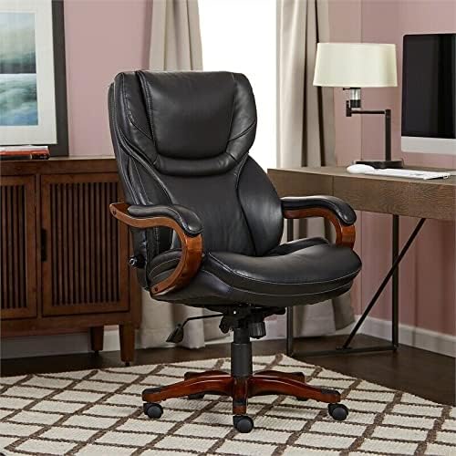 Finish: Black Material: Bonded Leather Commercial grade big and tall components can support up to 350 lbs Deep, ergo layered body pillows offer the body a serene and tranquil seating experience Specifications: Product Dimensions : 43.5-47" H x 27.25" W x 30.5" D Product Weight : 57 lbs Weight Capacity : 350 lbs
