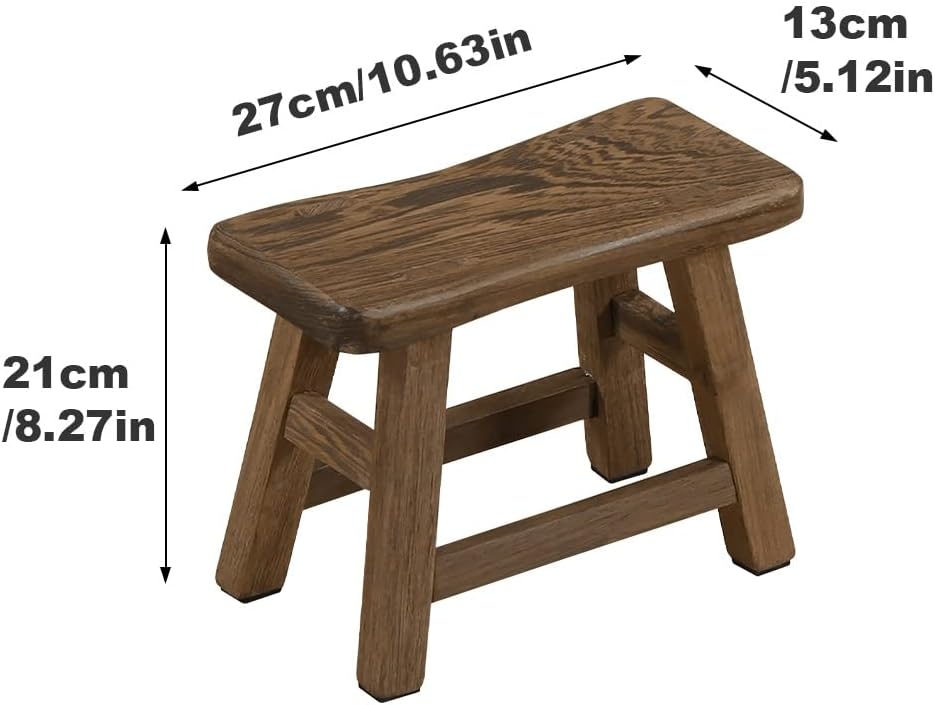 Easy to Carry: Light weight, Can be moved to any place indoor or outdoors, can be used for example in the bathroom, kitchen, office, garden, camping, fishing, traveling, etc.Widely Used: Use for plant/ lamp holders, bed steps for high beds, or a step stool to reach your high cabinets, and more.It can also be a great footstool for the living room, or a lovely footstool under the desk at work.Material: Wooden Stool made of natural wood, craftsmanship. Smooth surface, rounded corners and edges to avoid any potential clothes or skin scratches.Sturdy: Designed for density and strength and strong structural design, this wood step stool ensures to support your weight.Decorative: Wooden Stools has a rustic and retro design, will blend any furniture for home decoration.Gift: This wooden step stool is the for your wife, girlfriend, parents, grandparents, or any other person in your life who needs a height boost.Specification:Material: WoodColor: WoodSize(LxWxH): About 27x13x21cm/10.63x5.12x8.27inchPackage includes: 1pc x Wooden StoolNote:1. Due to the light and screen difference, the item's color may be slightly different from the pictures.2. Please allow 0.5-2 cm differences due to manual measurement.