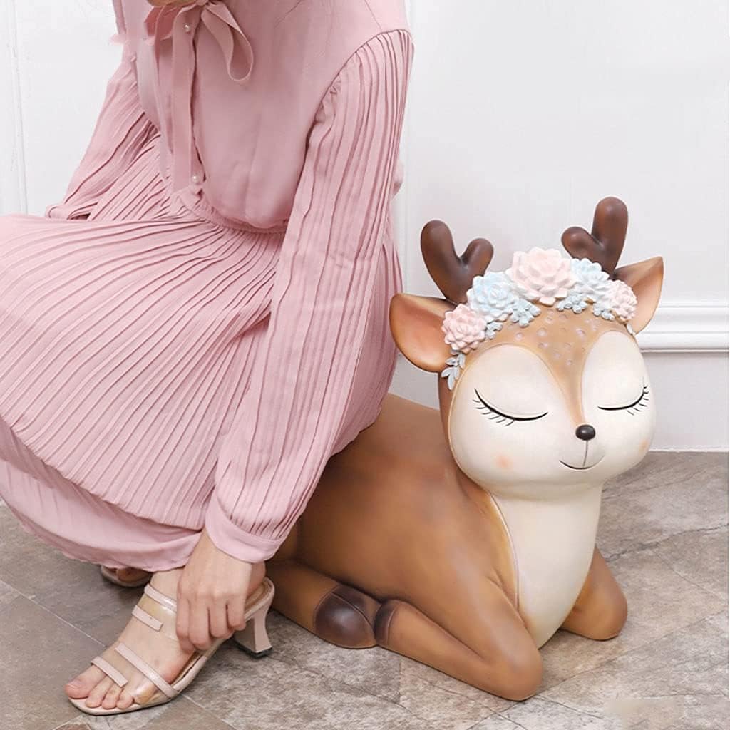 Product Name: Little Flower Deer StoolMaterial: ResinSize: 50Cmx45Cmx24Cm/19.6Inx17.7Inx9.4In