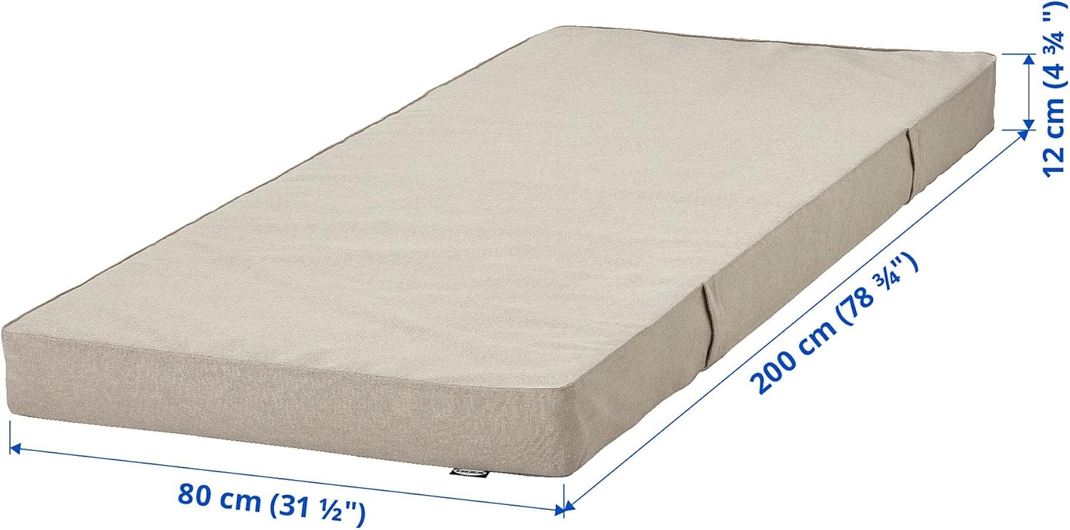 Key Features:A great choice for your day-bed thanks to its perfectly dimensioned size and comfort. Edge-to-edge pocket springs follow your individual movements while you sleep and there is no loss of comfort and support when mattresses are placed next to each other. A layer of foam on the top adds a cushioning comfort. To keep the cover fresh, it can be removed and machine washed. The complete mattress is covered by a 10 year guarantee. You can read about the terms in the guarantee brochure. The mattress is roll-packed so it’s easier to bring home Add a pillow that suits your sleeping position and a mattress protector to keep the mattress clean.Assembled Size:Length: 200 cmWidth: 80 cmThickness: 12 cmImportant note: For customers ordering from outside of EU, please note, you may be subject to import duty and tax. Please check with your postal or tax office on your import regulations