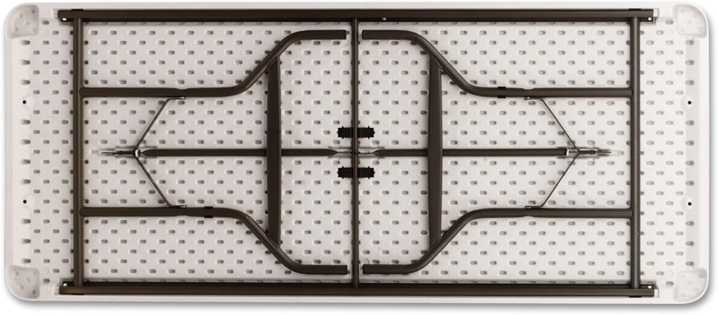 Lightweight and durable folding table for indoor and outdoor use. Legs fold into underside cavity for safe storage and easy transport. Made with blow-molded high-density polyethylene top is dent-, scratch- and water-resistant. Holds up to 1,000 lbs. evenly distributed. Square edge. Top Color: Platinum; Top Shape: Rectangular; Overall Width: 96"; Overall Depth: 30".