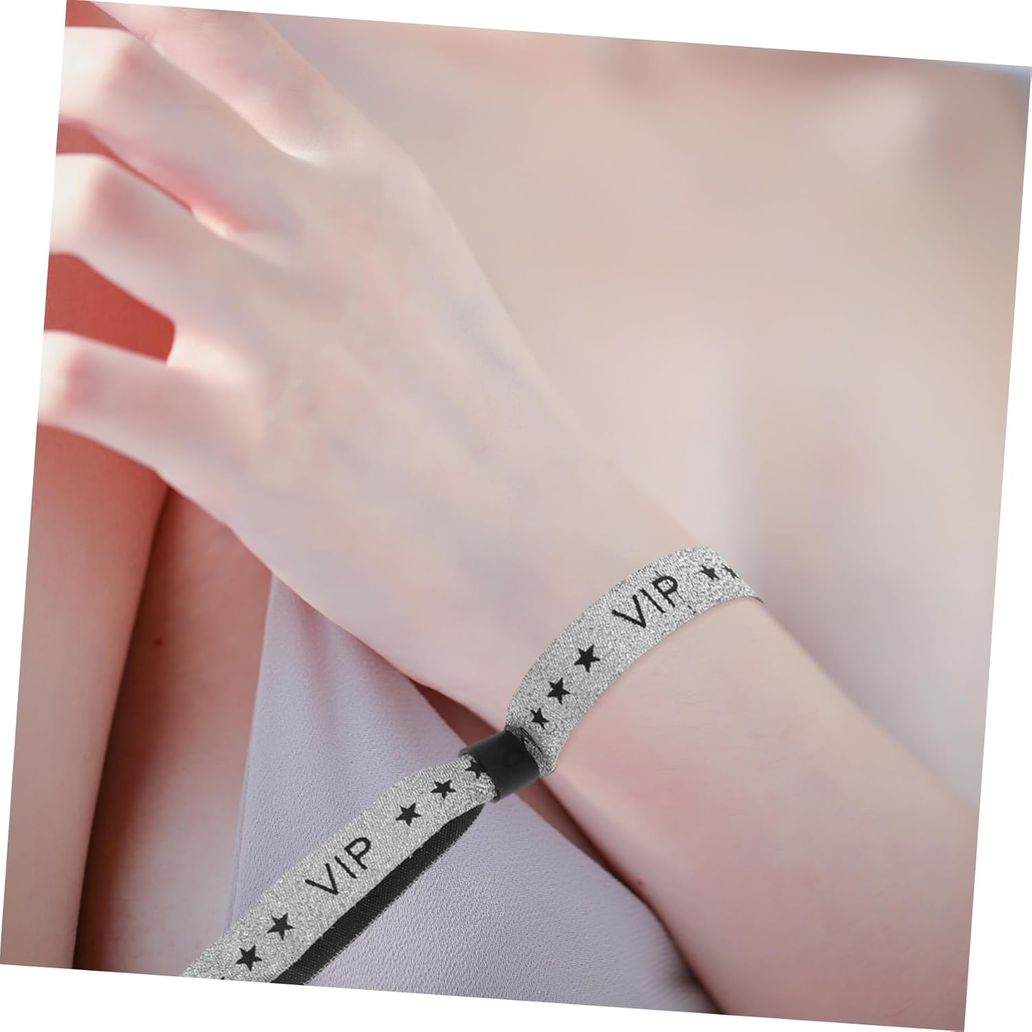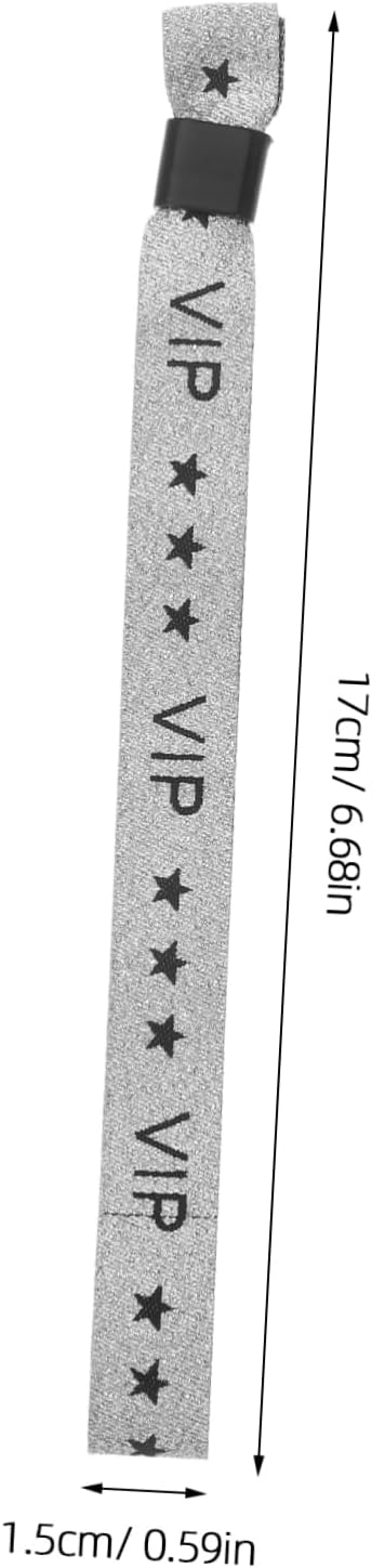 Package List 100 x vip wristbands Features -Size:17.00X1.50X0.10cm/6.68X0.59X0.04in vip bracelets for events -Color:Silver silver wristbands - : these wristbands are Ideal for festivals, concerts, and other large events, providing a reliable method of identification halloween wristbands -Comfortable wear: the fabric material is soft and comfortable, ensuring that attendees can wear the wristbands for long periods without irritation cloth wristbands -Durable for long-term use: although the lock is designed for single use, the wristband itself is built to last and can be kept as a lasting keepsake red wrist bands -Material:Polyester custom wristbands for events -Elegant design: the silver shimmer adds a touch of elegance, making these wristbands a stylish accessory for any event wristbands vip -Lightweight and durable: these wristbands are lightweight yet durable, making them suitable for extended use at any event wrist bandsGoods Informationvip wristband To use, wrap the wristband around your wrist and fasten it with the secure clasp.supplies for concert These wristbands provide a stylish and exclusive way to enjoy your event.party bracelets for events VIP fabric wristbands are the Ideal accessory for any event, from music festivals to private parties.wristbands bracelets Made from polyester, these wristbands are designed to be both durable and comfortable