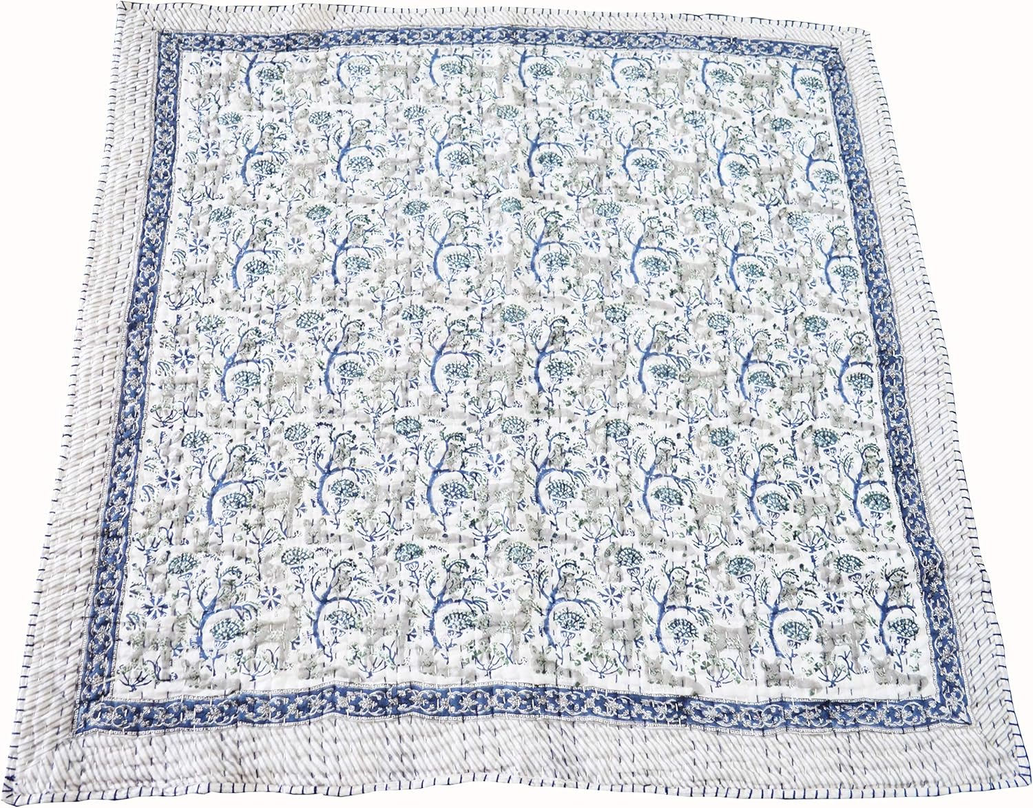 Beautiful Indian Famous Hand Block Print Winter Baby Quilt In Side Doctor Cotton. Jaipur Rajai. Thousands of small and delicate kantha stitches to create a one of a kind masterpiece! Our new luxurious quilted baby blanket or play mat is hand-made from the softest organic cotton fabric and inside a cotton-padded sheet. Super cozy and will become softer and softer with time. These quilts are hand block print with hippie style your baby will find peace and love with this gem