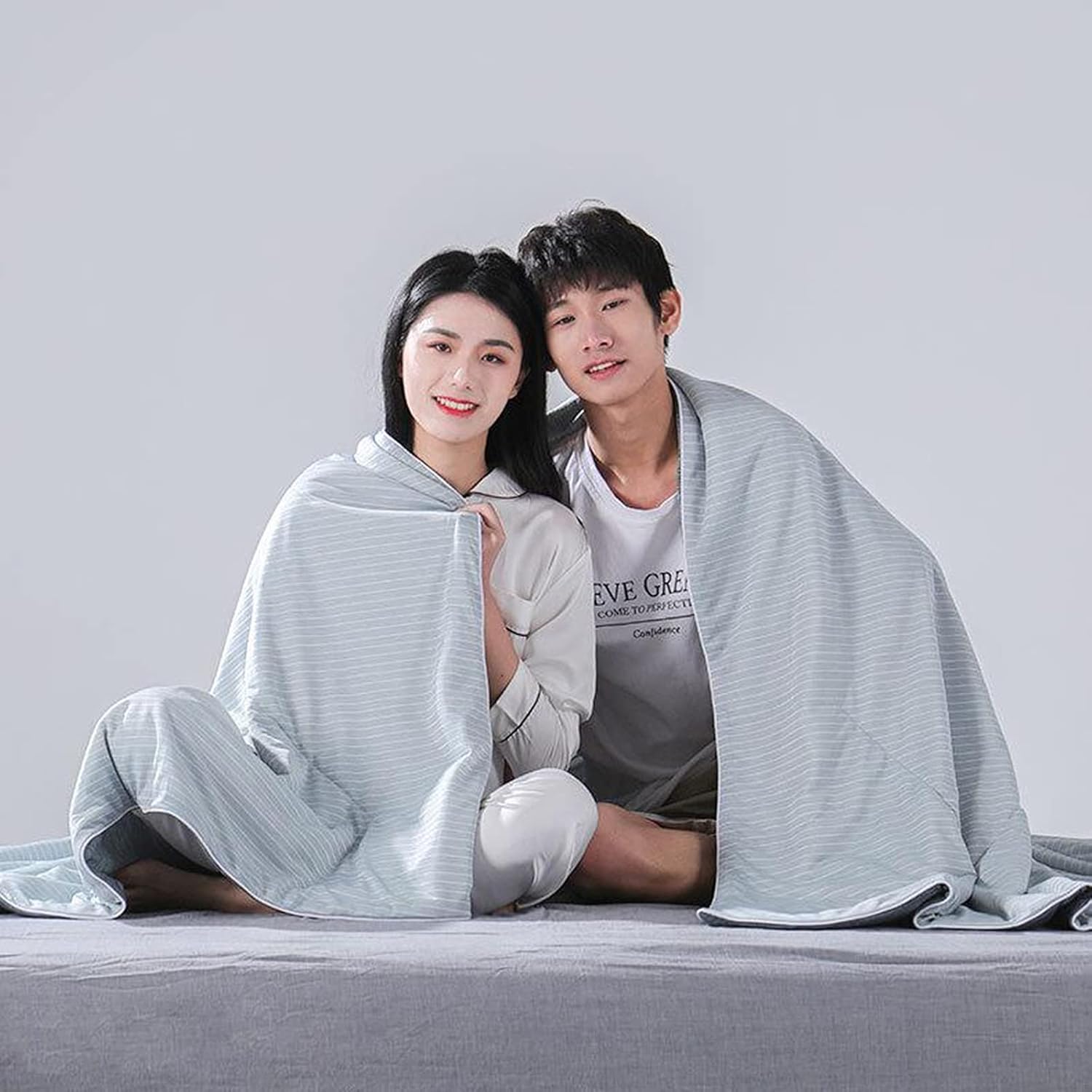 specification size: 150*200cm 200*230cm Fabric: Fashion cool fabric (A side 50% nylon 50% polyester fiber + B side 50% nylon 50% polyester fiber) filling: 150*200cm polyester fiber quilted cotton 320g 200*230cm polyester fiber quilted cotton 500g Product grade: qualified product Product filling: polyester fiber Product fabric: Cool knitting color cloud (nylonpolyester fiber) Product process: fixed spun stitch The package contains: 1*Summer Cool Quilt
