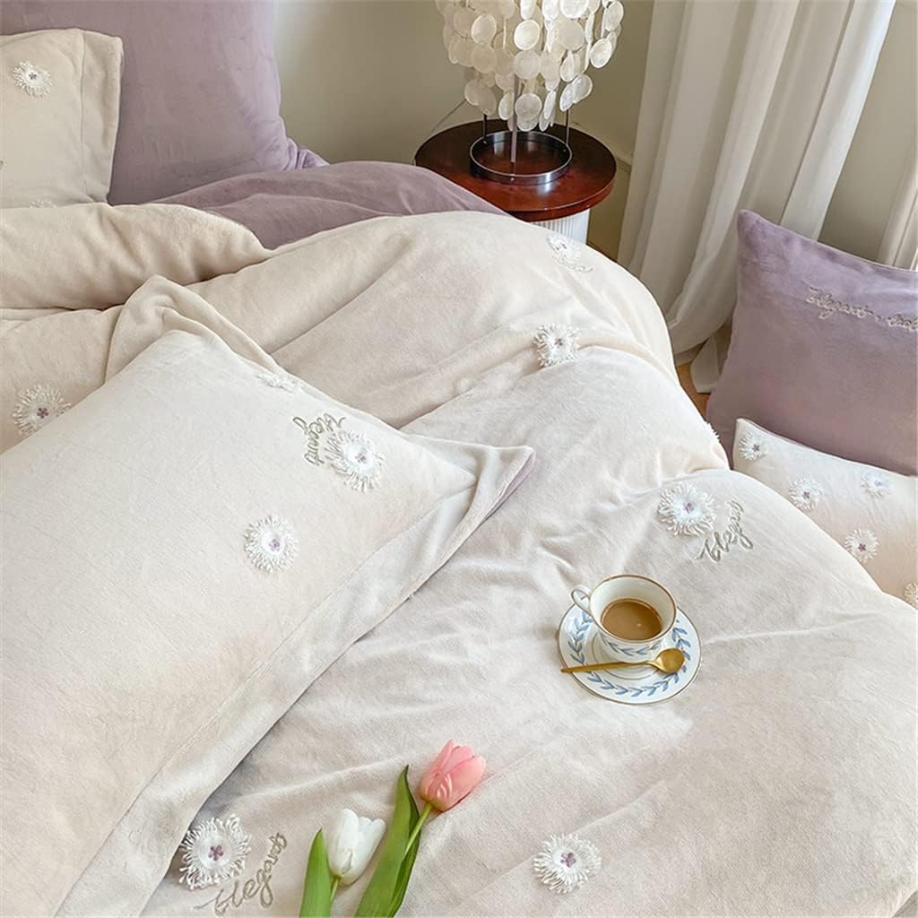 Features: Milk velvet is a soft and suede wool fabric surface with high fiber density and good coverage. Milk velvet has enough to resist the cold of winter embroidery. Good skin affinity, no irritation to the skin, beautiful appearance, rich color, smooth hand feel and no static electricity. Exquisite embroidery, tight stitches, every stitch and every thread are dedicated to quality. The pillowcase and quilt cover are made of solid color and wide-sided technology, which is elegant and fashionable, and carefully sets off the elegance of the kit. Hand-made tassel flower design, stylish and beautiful, elegant, and good sleep all night. Pure color tone, clean design style, simple but not simple. specification Material: 100% Cotton Color:as shown Size: 1.5/1.8m four-piece set: quilt cover 200*230*1, bed sheet 245*250*1, pillow case 48*74*2 2.0m four-piece set: quilt cover 220*240*1, bed sheet 245*270*1, pillowcase 48*74*2. Package content Four-piece suit: a quilt cover, a bed sheet, a pair of pillowcases If you have any questions about the product, please contact me, we will contact you within 24 s and give you a satisfactory answer. The fabric feels soft and comfortable, soft and delicate.