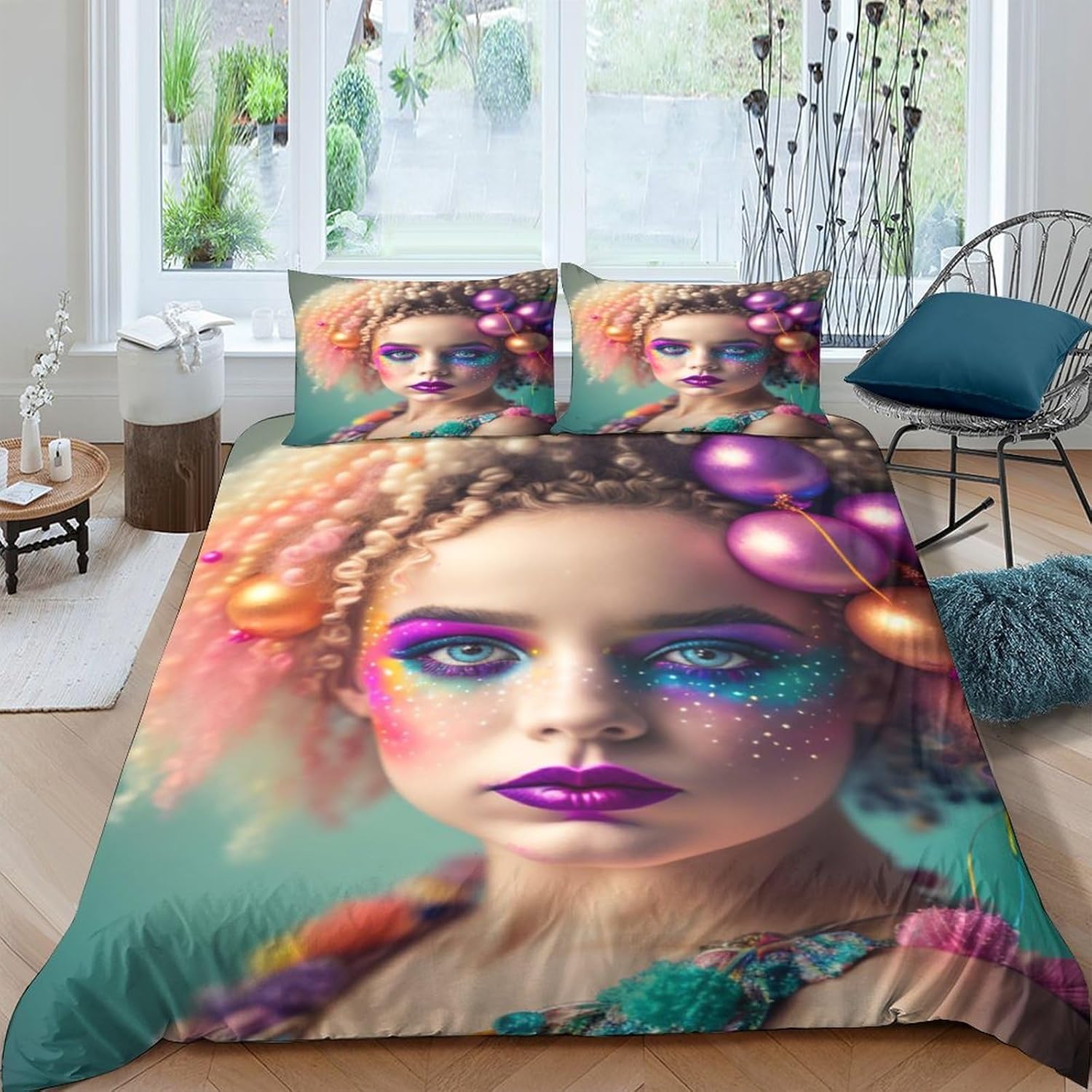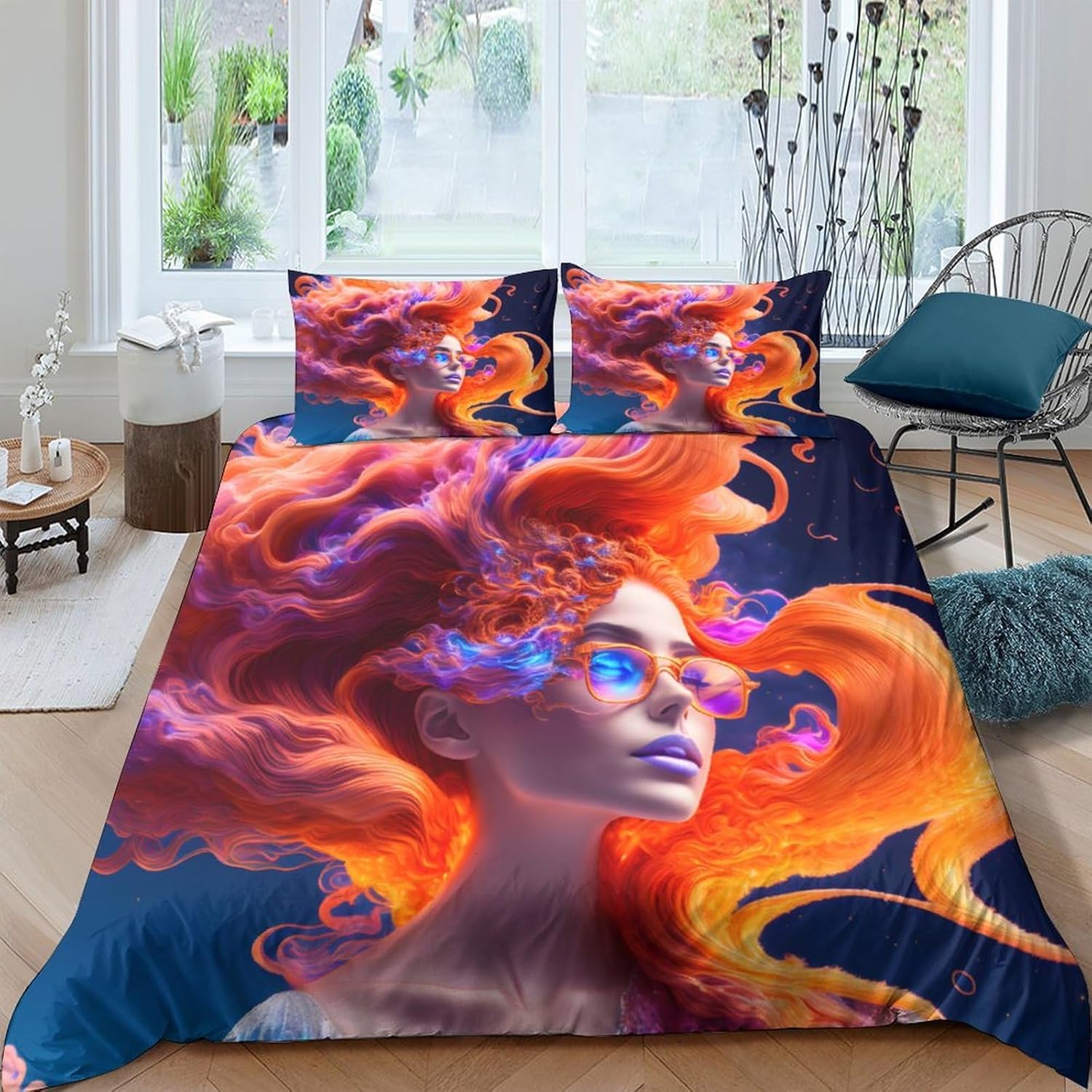 ⭐Sizes Choice:Twin size comforter set: 1 Twin Comforter 173 x 218cm(68x86inches) and 2 Pillowcase 50 x 75cm(20x30inches);Full size comforter set: 1 Full Comforter 200x 228cm(79x90inches) and 2 Pillowcases 50 x 75cm(20x30inches)Queen size comforter set: 1 Queen Comforter 228x 228cm(90x90inches) and 2 Pillowcases 50 x 75cm(20x30inches):King size comforter set:1 King Comforter ⭐Soft Material:Brushed Microfiber Material Shell with 100% polyester filling.Medium thickness for any season. ⭐Printing And Dyeing: Excellent 3D printed highlights vivid colors. Great choice for your bedroom decoration. New lifestyle for home decor.